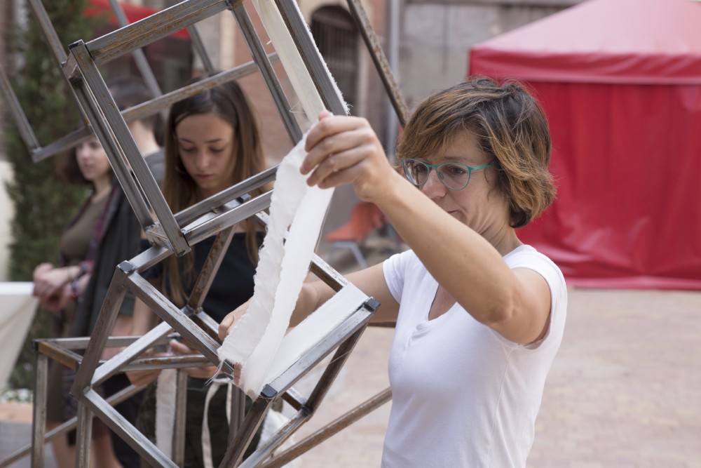 Con la tela como herramienta de trabajo, los estudiantes crearon una “obra nueva” en la propia escultura. En una primera fase llevaron a cabo diferentes bocetos que pusieron en común para crear un proyecto conjunto.