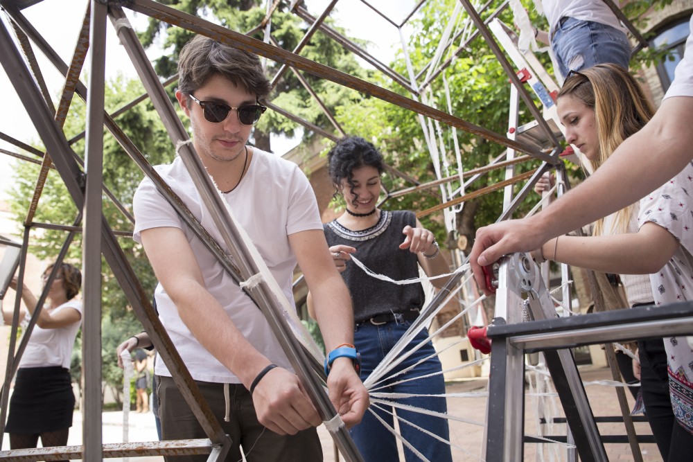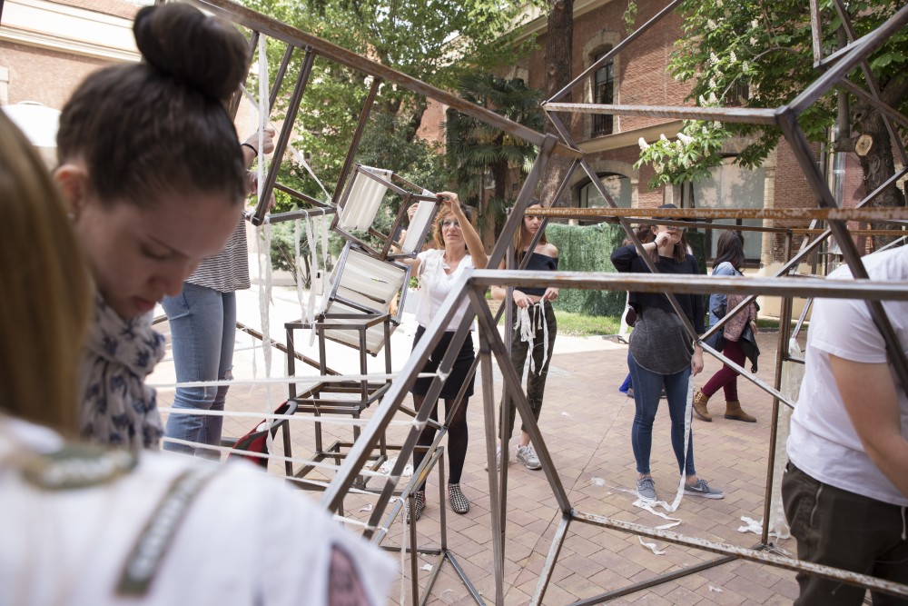 La escultura fue otra de las actividades protagonistas de la jornada. Los alumnos de la asignatura “Materiales y técnicas de escultura” y “Taller tridimensional”, guiados por la profesora Lucía Loren, intervinieron la escultura “El árbol de la Inclusión”, situada en el patio del Campus de Princesa.