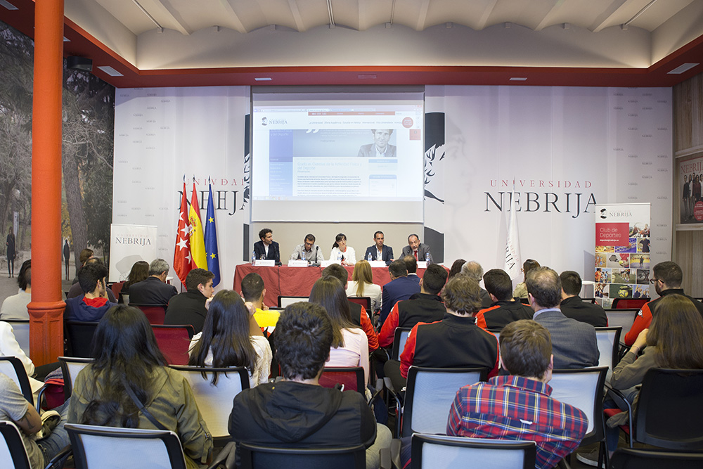 Jesús Pérez Casado, gerente del Colegio Oficial de Licenciados de E.F. y Ciencias de la Actividad Física y el Deporte de la Comunidad de Madrid, explicó la nueva regulación que ordena el ejercicio de las profesiones del deporte en la región madrileña y ofreció colegiación gratuita a los futuros estudiantes de la Universidad Nebrija.
