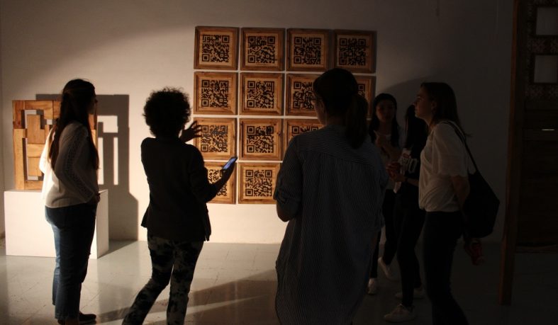 La obra de Clara Carvajal, a caballo entre la naturaleza y la tecnología, con un profundo substrato documental, histórico, conceptual y teórico sobre el que se apoya, sirvió de hilo conductor en toda la visita. En el estudio de Clara, donde actualmente trabaja también Rocío Martín Gorbe, antigua alumna de Nebrija y graduada en Bellas Artes, nuestros alumnos tuvieron ocasión de conocer algunas piezas de sus últimas series, como Écfrasis o La Lengua Perfecta, en las que se combina el trabajo en madera con la asociación entre la escritura cúfica y los códigos QR, y vieron algunos vídeos producidos por la artista, como Tradición y Manipulación. La visita fue una perfecta ocasión para descubrir mucho más que el proceso creativo y adentrarse en la gestión integral de la obra.