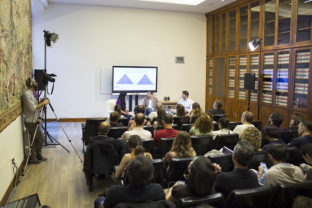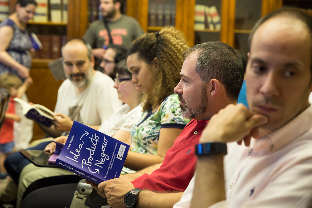 Durante la presentación, Justo Hidalgo hizo un repaso por el proceso que un emprendedor realiza desde el momento que tiene una idea hasta que consigue realizarla y ponerla en el mercado. Gonzalo Torres, director de Opinno Solutions, editor de MIT Technology Review y Harvard Business Review en español y director de startup Grind Madrid, que acompañaba al autor en la presentación también explicó que “la fortaleza, pero también, la debilidad del emprendedor es la pasión porque puede hacerle aferrarse a una idea que no es buena y en la que solo cree él”.
