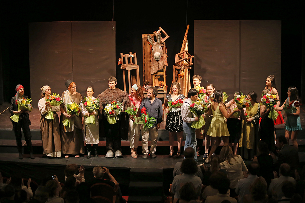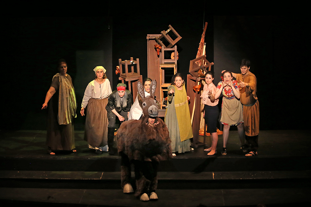 Los alumnos de Artes Escénicas estrenaron el lunes 29 de mayo la obra Proceso por la sombra de un burro, del dramaturgo Friedrich Dürrenmat, en el Teatro Cofidis. Una muestra del aprendizaje, la dedicación y el trabajo de los estudiantes que durante los últimos cuatro años se han formado como intérpretes y creadores en las aulas de la Universidad Nebrija.