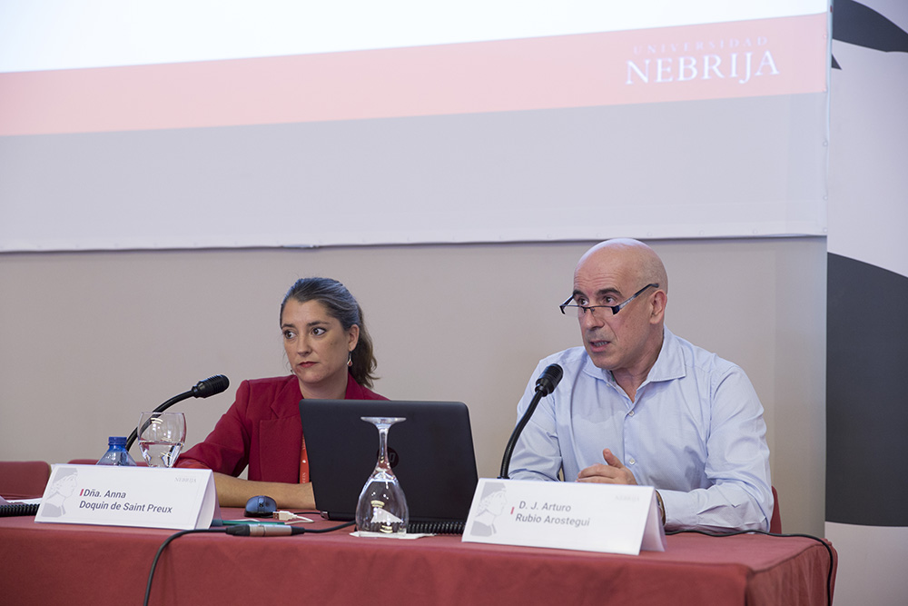 Anna Doquin de Saint Preux, coordinadora del doctorado de Lingüística Aplicada y Juan Arturo Rubio Arostegui, adjunto al vicerrector de investigación de la Universidad Nebrija, han presentado un estudio sobre la escritura académica, una herramienta útil tanto para profesores como alumnos, con una encuesta a nivel europeo a profesores y alumnos. El objetivo ha sido discernir la verdadera utilización y nivel que ambos públicos tienen de la escritura académica a la hora de realizar trabajos de docencia o académicos. Entre las conclusiones han destacado las discrepancias que existen entre la percepción que tienen los alumnos y profesores de la capacidad de los primeros para utilizar y leer este tipo de escritura. Los profesores perciben un bajo nivel, aunque los alumnos se sienten bastante seguros a la hora de enfrentarse a este tipo de trabajos. Asimismo, también existen diferencias en cómo ven los profesores y los alumnos la necesidad de basarse en evidencias científicas o usar el pensamiento crítico en sus trabajos.