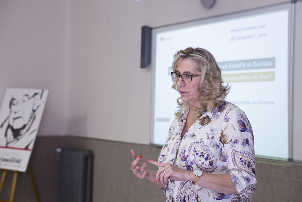La jornada contó con la participación de representantes de la industria del plástico, como Teresa Martínez, directora de Cicloplast, Eva Verdejo, responsable de Sostenibilidad y Valorización Industrial de AIMPLAS, y Pedro Melgarejo, responsable Marketing y Comunicación de Plásticos Romero. Todos coincidieron en la necesidad de continuar mejorando el proceso de reciclaje, para que este material pueda ser reintegrado en el sistema productivo después de su uso. “En la industria del plástico debemos intentar convertir la economía circular en una oportunidad. Los plásticos, si están bien diseñados, soportan muchos usos. Son muy reutilizables”, afirmó Melgarejo. Por su parte, Verdejo insistió en la investigación como vía para encontrar nuevas soluciones y aplicaciones de los plásticos y mejorar el proceso de reciclado de este material. Un ámbito, es del reciclaje, en el que nos encontramos por encima de la media europea, como señalo la directora de CICLOPLAST.