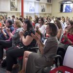 Juanjo Oliva ha comparado a los alumnos con hojas en blanco “así que podéis formaros y aportar algo al sistema, que está roto. La industria está rota porque desde hace muchos años los diseñadores solo reciclamos viejas ideas, no hay nada nuevo. Estáis llamados a crear cosas nuevas, está todo por hacer”, ha dicho. “En mi estudio procuro rodearme de gente más joven que yo, gente como vosotros, que tenga todo por hacer. Creo que sois muy necesarios”, ha explicado el prestigioso diseñador.