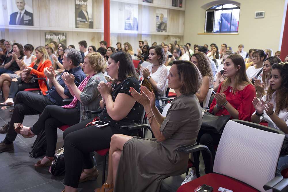 Durante su charla ha abogado por la importancia de la especialización, encontrando las habilidades de cada uno: “nadie es capaz de hacerlo todo bien, así que hay que saber qué haces bien tú y qué hacen bien tus compañeros. Con muchos de los que se van a sentar en clase con vosotros trabajaréis en el futuro.” Ha animado a los nuevos alumnos a encontrar su identidad profesional, algo que ha de forjarse en las aulas, pero también “manteniendo la curiosidad. Tenéis que ir a exposiciones, salir, descubrir cosas, estar atentos a lo que pasa. Pero tenéis que profundizar en las cosas, no quedaros en lo superficial.”