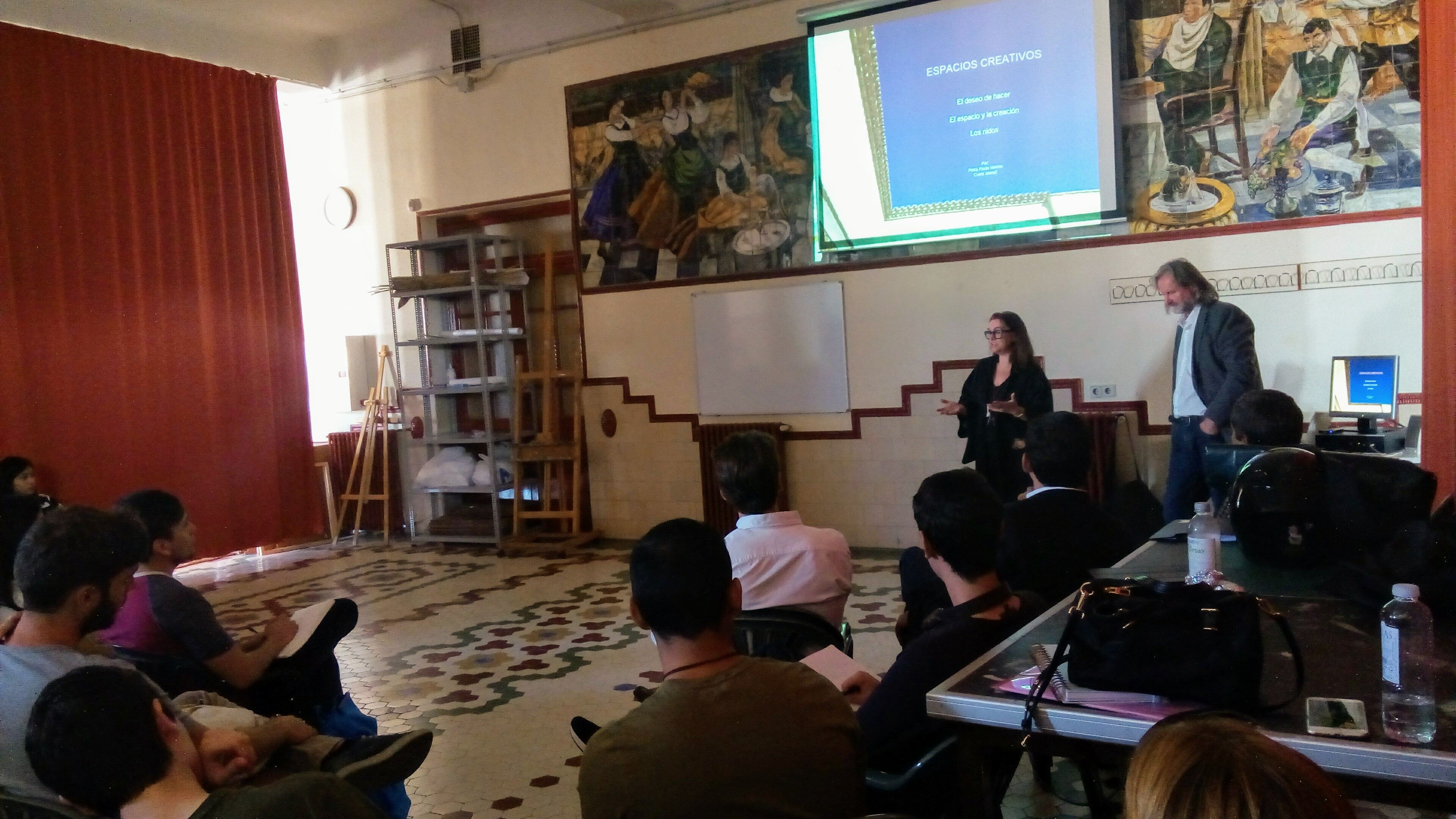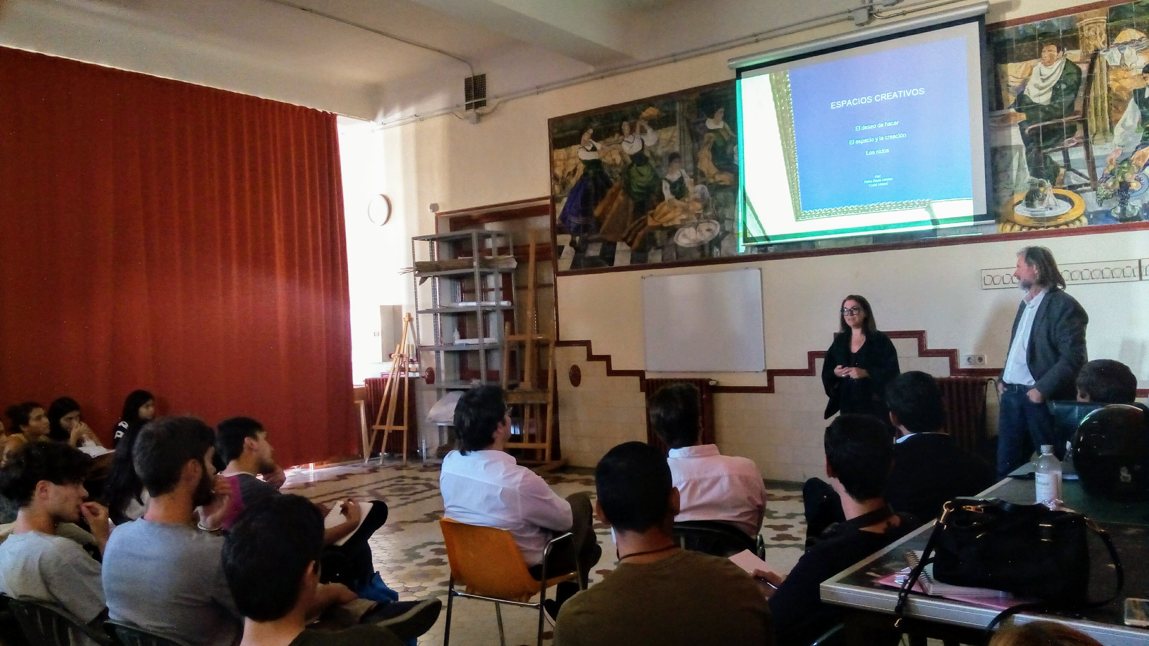 La influencia del entorno en el que se crean las obras, el taller, es un punto clave en la inspiración y el resultado de las obras pictóricas de Marsič. Por eso, durante la conferencia, ambos hicieron un repaso por todos los distintos talleres en los que han trabajado y los lugares donde se ubicaban, para que los alumnos pudieran entender esta relación.