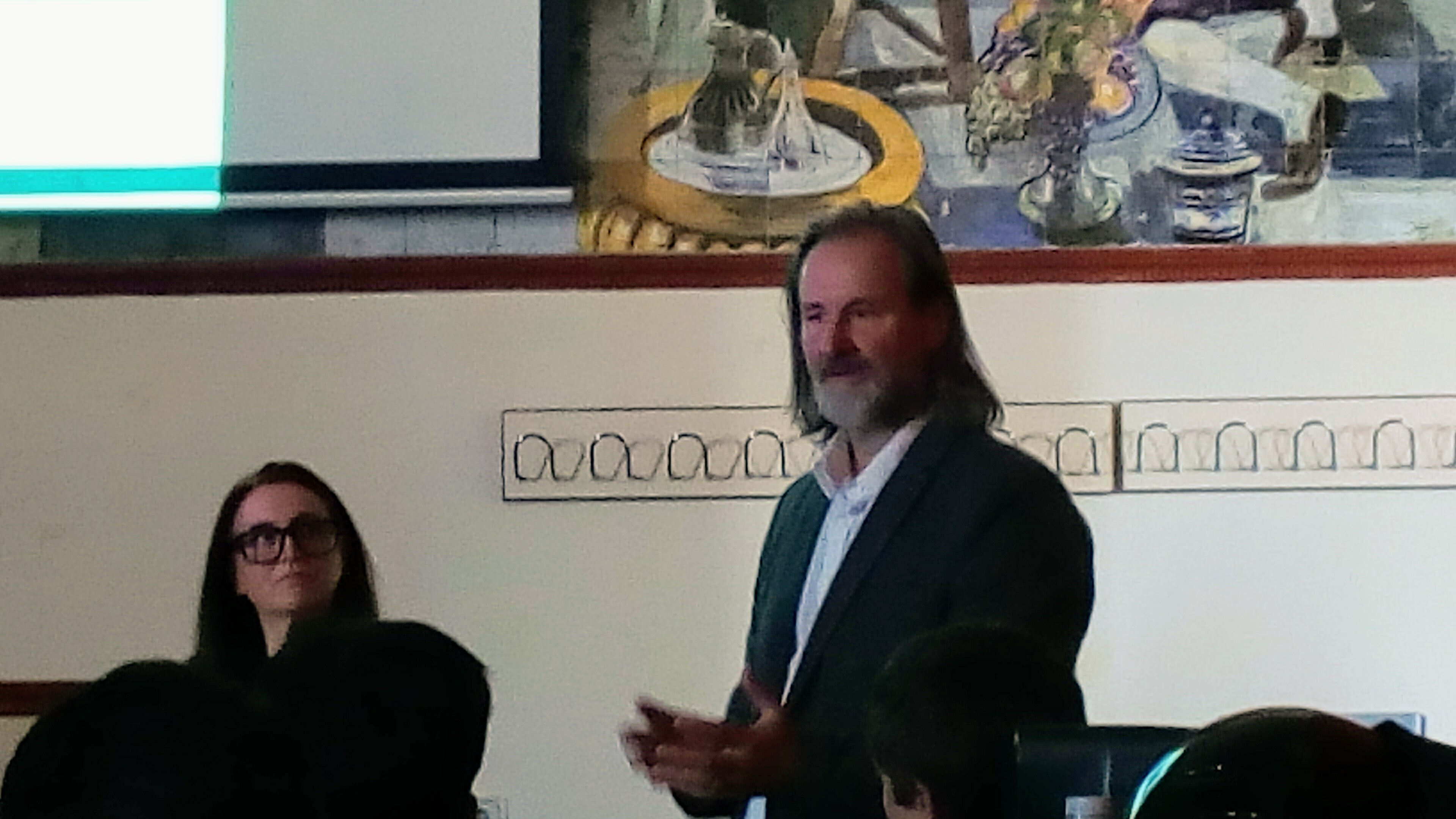 “Considero el deseo como una necesidad que te empuja para hacer cosas y es importante tenerlo para llegar a cumplir lo que nos planteamos” explicó Cveto Marsič a los alumnos. Una de las características de su obra es que no utiliza herramientas para pintar, sino sólo sus manos, “es una forma de acercarse muy íntima al proceso creativo” afirmó.