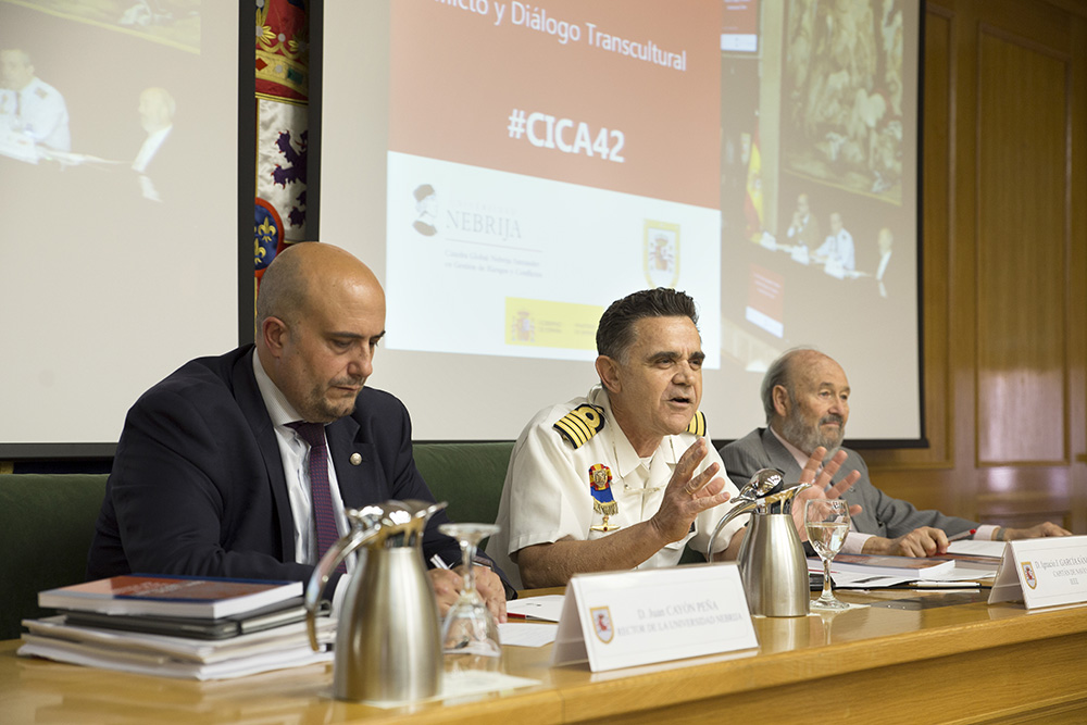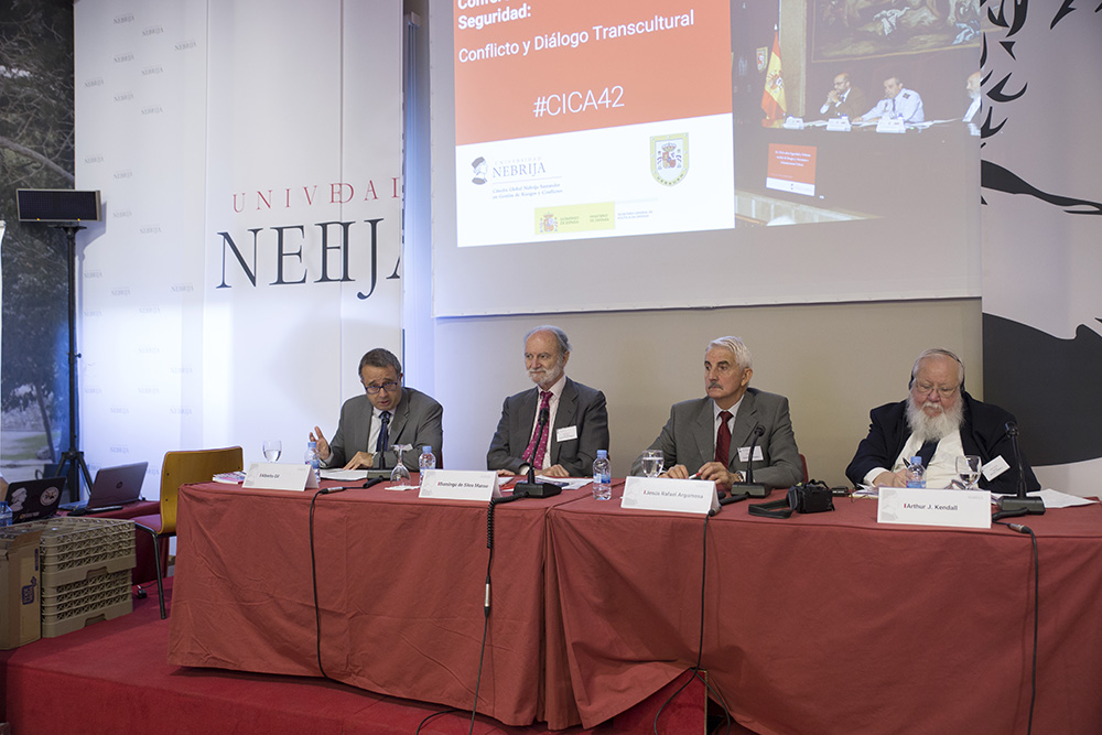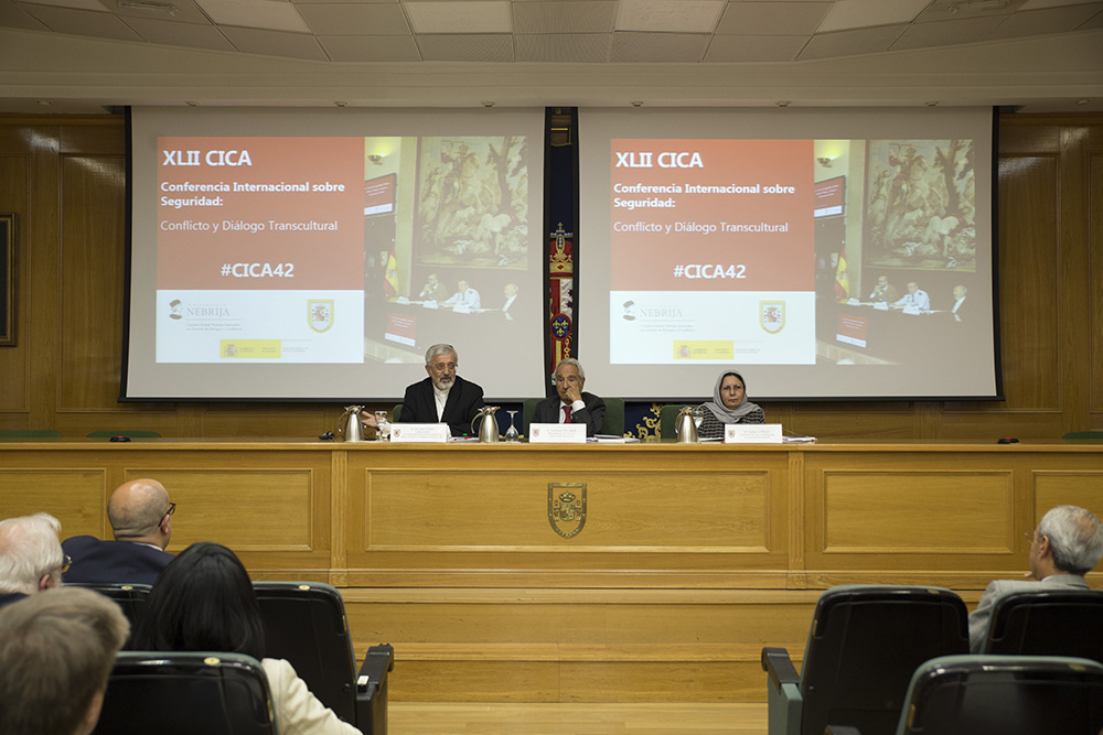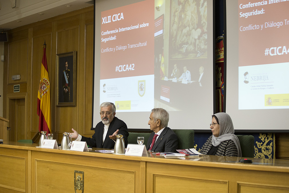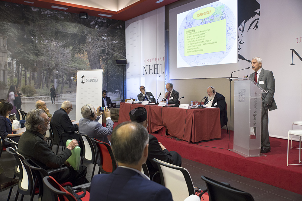 Juan Cayón, rector de la Universidad Nebrija, resaltó en su intervención la importancia de la educación y la implicación de la Universidad en los valores de tolerancia. La primera sesión, celebrada en la sede del Centro Superior de Estudios de la Defensa Nacional, CESEDEN, consistió en una mesa redonda moderada por el general de división Guillermo Velarde en la que participaron Abraham Haim, presidente, de la comunidad sefardí de Jerusalém, que habló sobre educación para la democracia, la paz y los derechos humanos: la experiencia de Israel; Ali A. Soltanieh, antiguo embajador de Irán en organismos internacionales, quien habló sobre el futuro de las armas nucleares tras el tratado de no proliferación; Saideh Lotfian, presidenta de Consejo Internacional del movimiento Pugwash, quien disertó sobre las complejas crisis de seguridad en Oriente Medio y Norte de África en un mundo globalizado.
