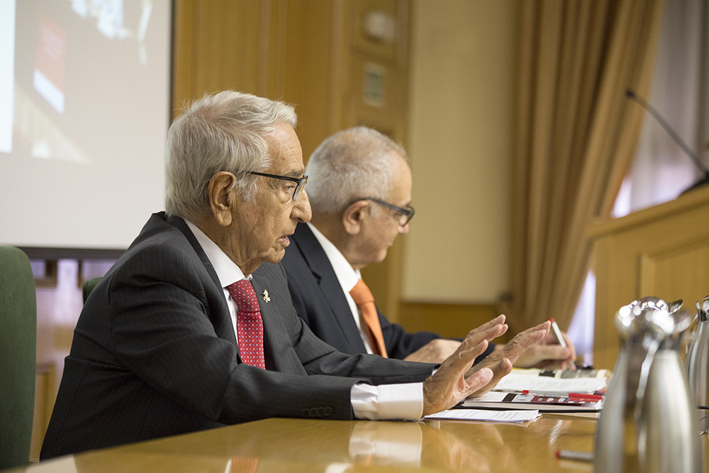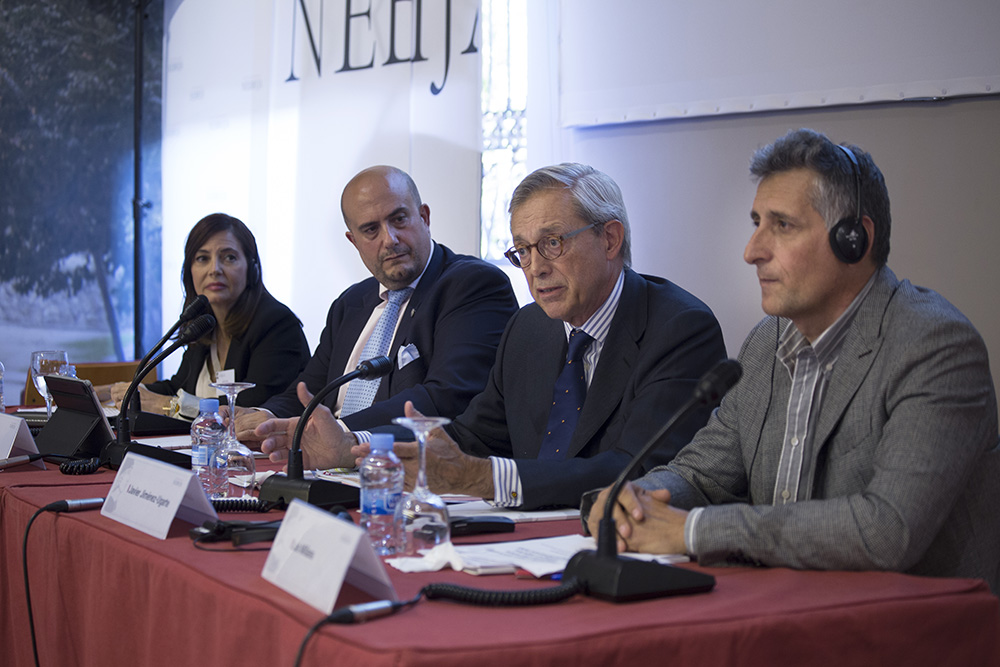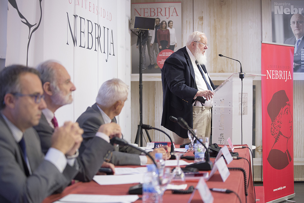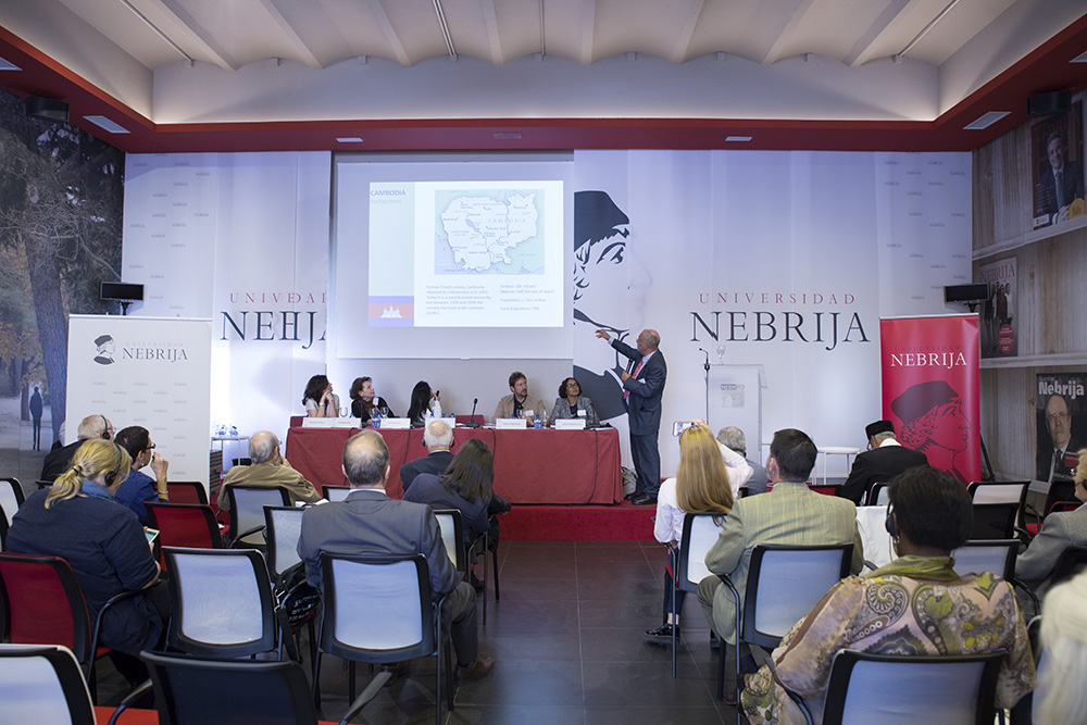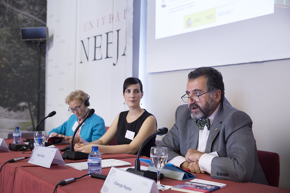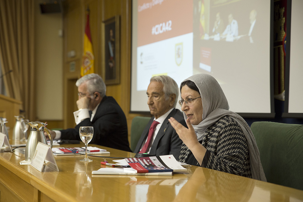 Juan Cayón, rector de la Universidad Nebrija, resaltó en su intervención la importancia de la educación y la implicación de la Universidad en los valores de tolerancia. La primera sesión, celebrada en la sede del Centro Superior de Estudios de la Defensa Nacional, CESEDEN, consistió en una mesa redonda moderada por el general de división Guillermo Velarde en la que participaron Abraham Haim, presidente, de la comunidad sefardí de Jerusalém, que habló sobre educación para la democracia, la paz y los derechos humanos: la experiencia de Israel; Ali A. Soltanieh, antiguo embajador de Irán en organismos internacionales, quien habló sobre el futuro de las armas nucleares tras el tratado de no proliferación; Saideh Lotfian, presidenta de Consejo Internacional del movimiento Pugwash, quien disertó sobre las complejas crisis de seguridad en Oriente Medio y Norte de África en un mundo globalizado.