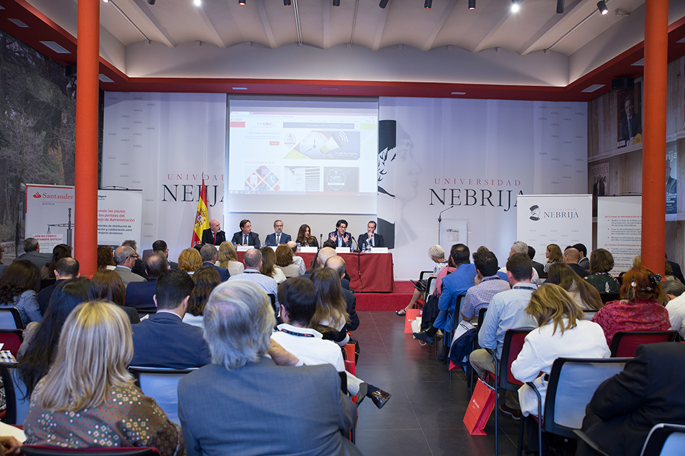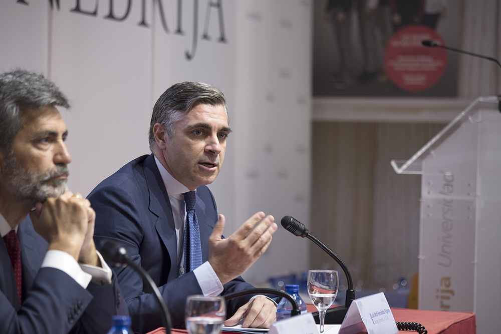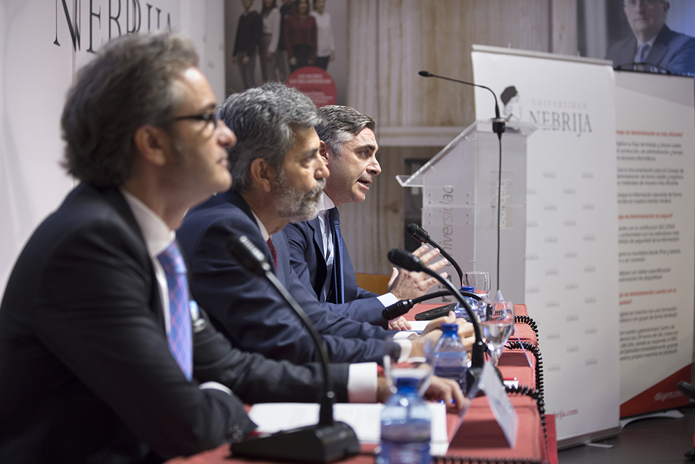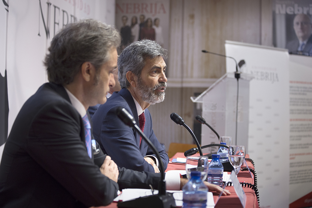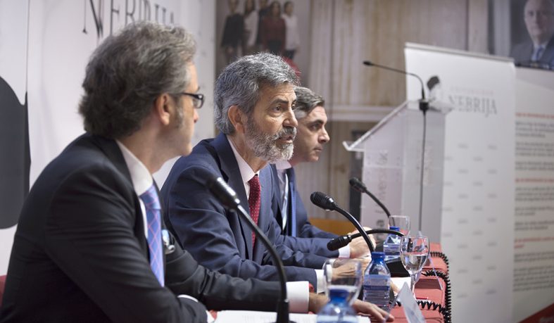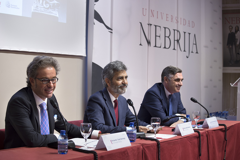 Carlos Lesmes, presidente del Tribunal Supremo y del Consejo General del Poder Judicial, Luis Moll, presidente del Consejo Superior de Letrados y Abogados de las Comunidades Autónomas, y Fernando Tomé, decano de la Facultad de Ciencias Sociales de la Universidad Nebrija, inauguraron ayer el III Congreso del Consejo Superior de Letrados y Abogados de las Comunidades Autónomas. Este congreso, con el título genérico de “Derecho y nuevas tecnologías”, se ha celebrado en el campus de Madrid-Princesa de la Universidad Nebrija los días 21 y 22 de septiembre.