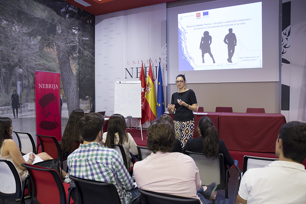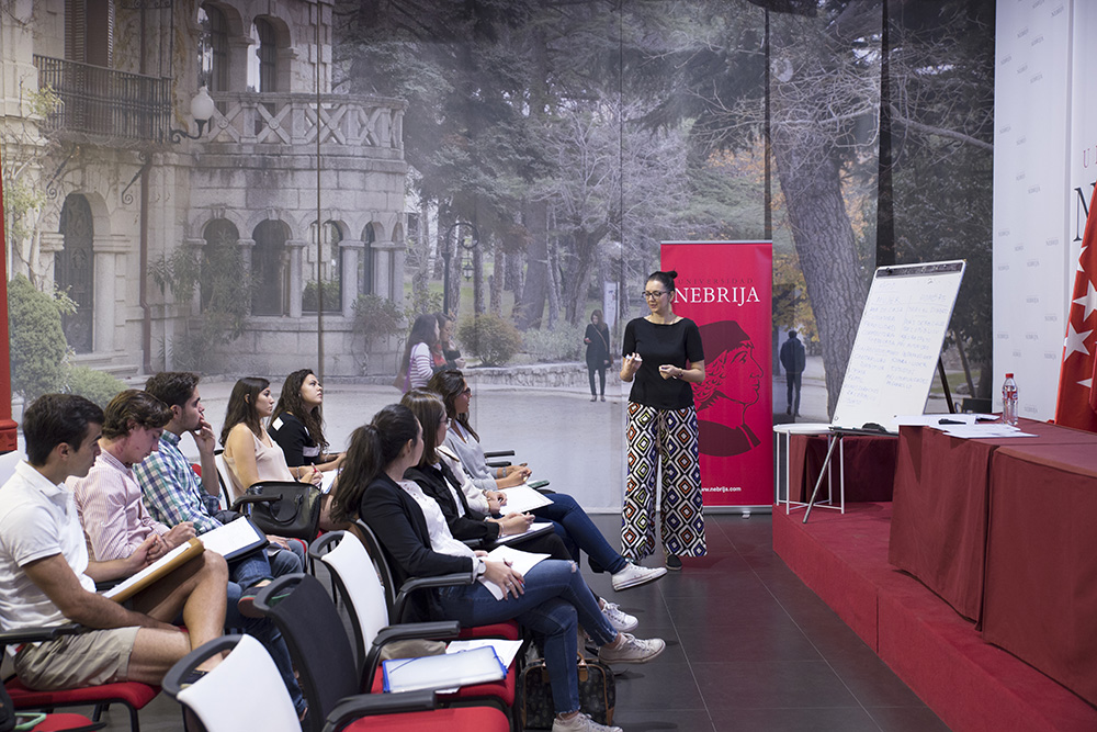 El Instituto Nebrija de Competencias Profesionales organizó el taller durante los días 9 y 10 de octubre. Esta acción es una iniciativa de la Dirección General de la Mujer de la Comunidad de Madrid, en colaboración con el Fondo Social Europeo, que es coordinada desde la Fundación Tomillo. Es un proyecto destinado a jóvenes universitarios y tiene el objetivo de potenciar las habilidades de liderazgo, emprendimiento, comunicación… para el desarrollo de la carrera profesional. Los talleres se impartieron en grupos pequeños para facilitar la participación de todos los asistentes en las actividades propuestas.