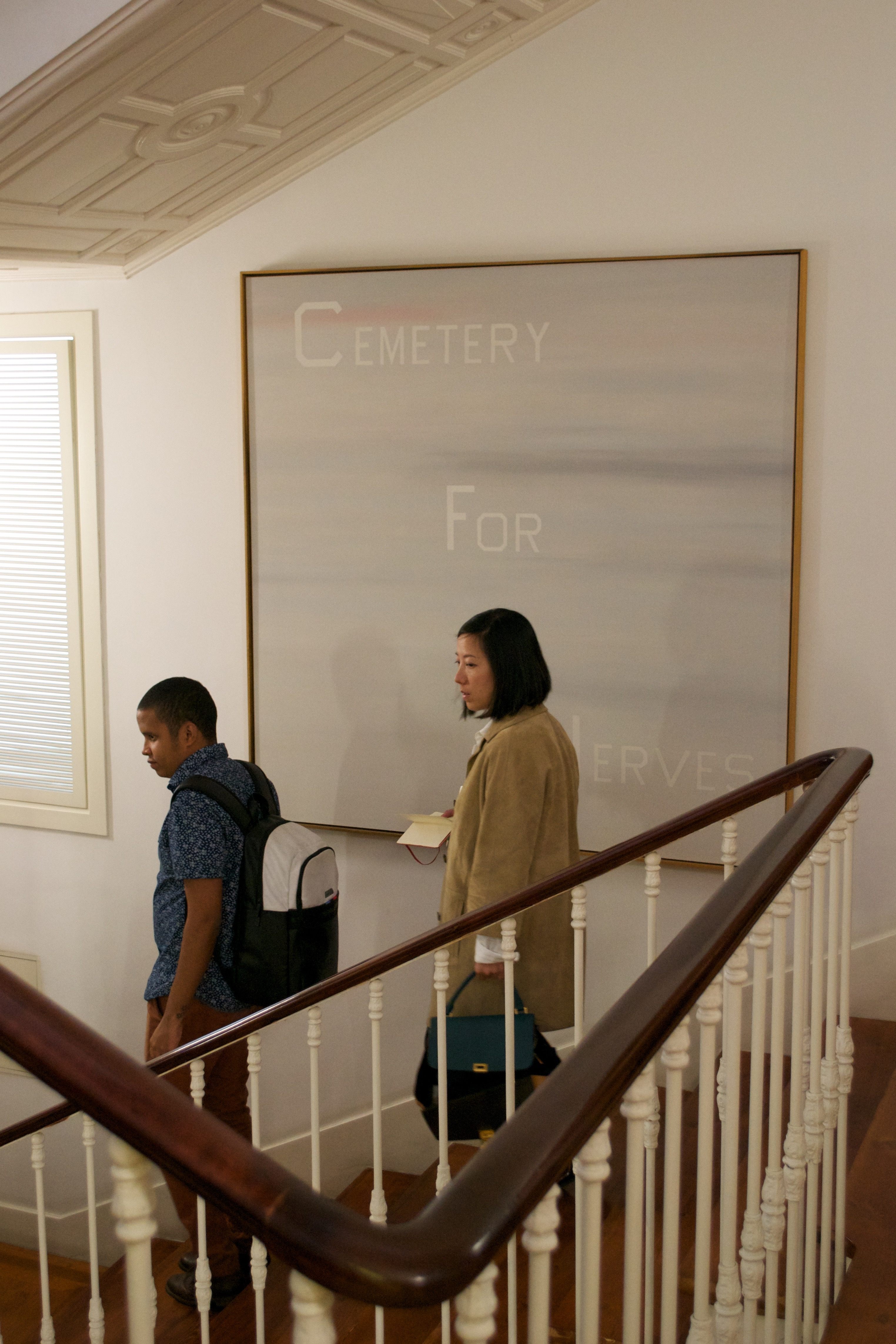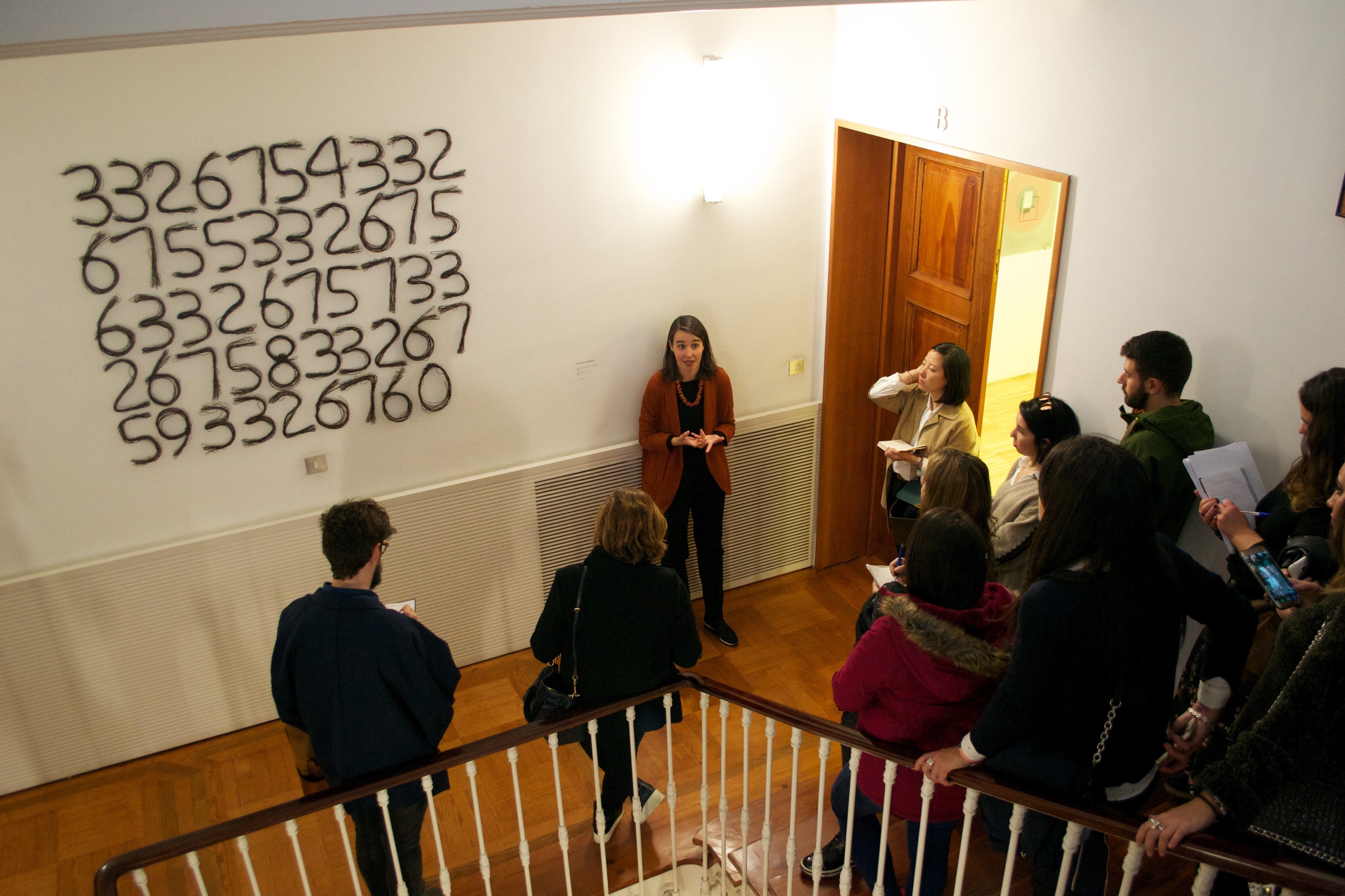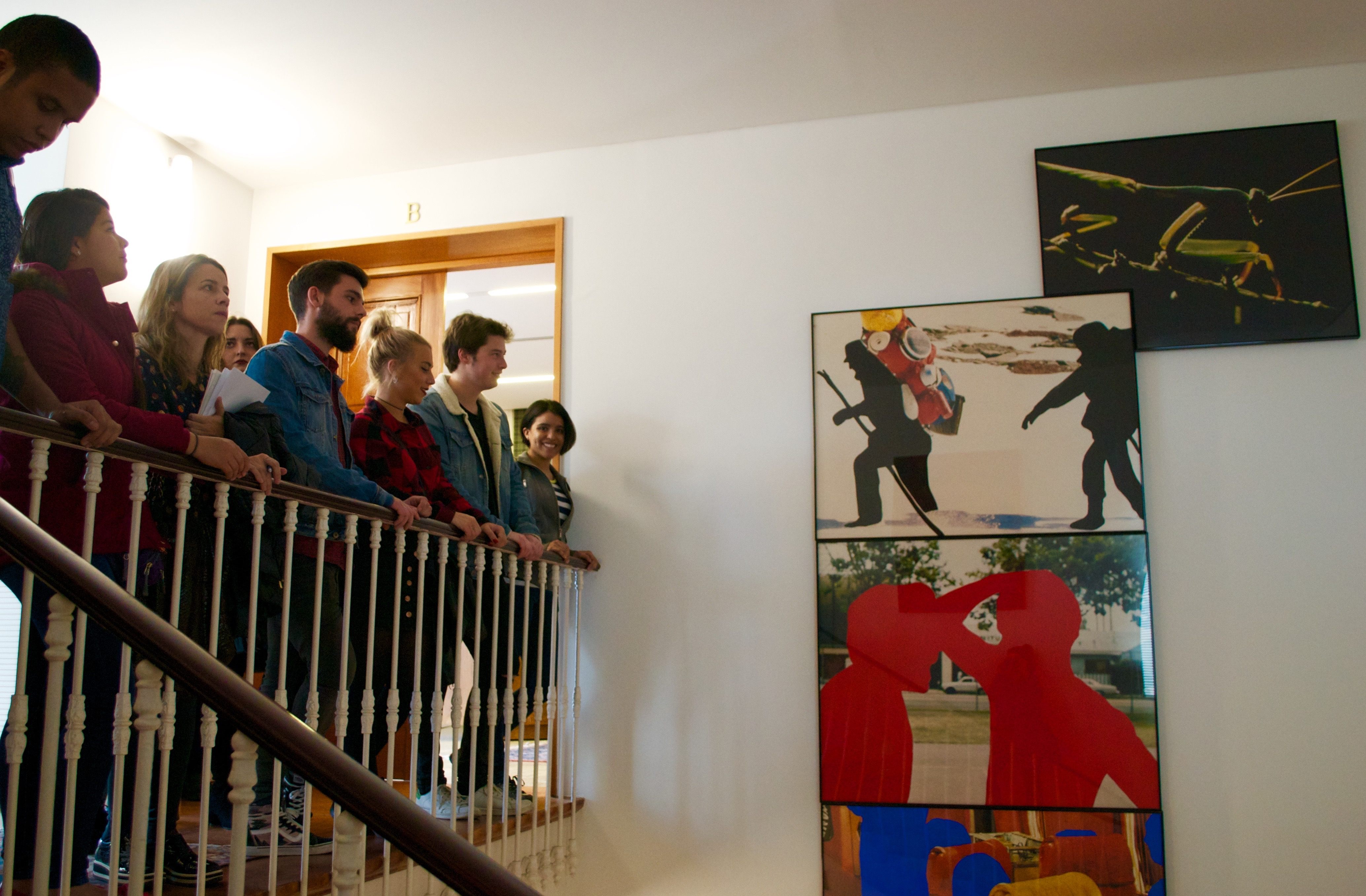 La segunda visita tuvo lugar el pasado viernes 3 de noviembre. María Aguilera Aranaz, conservadora de la colección Bergé, recibió a los estudiantes con una introducción sobre la familia Bergé y el inicio el proceso de recopilación de las obras. Explicó que la finalidad de la misma no financiera, sino más bien de un genuino interés por el arte y por construir un legado familiar que lleva cinco generaciones. La filosofía de la Colección Bergé se sustenta en la adquisición de artistas noveles con la mirada puesta en el ámbito internacional. “Ni inversión, ni decoración, sino el termómetro de la sociedad, de la historia, filosofía, economía y ecología” explicó María Aguilera. Los alumnos, acompañados por la directora del Máster Diana Angoso de Guzmán, pudieron apreciar obras de artistas de la talla de Bruce Nauman, John Baldessari, Gerard Richter, Ian Monroe, Ghada Amer o Céline van Balen.