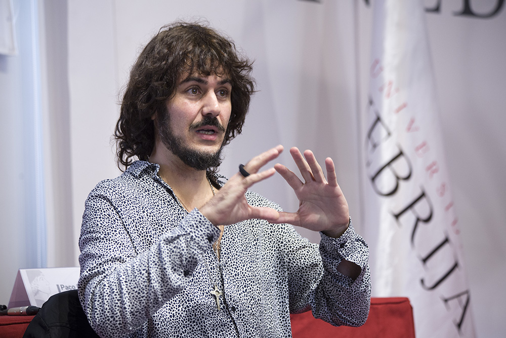 El dramaturgo Paco Becerra ha celebrado un encuentro con los alumnos de la asignatura de “Literatura Creativa” para acercar la realidad de la escritura de obras de teatro a las aulas. Como Becerra, los alumnos también se enfrentan en esta asignatura a la creación de una obra propia y han podido pedir consejo y aprender del sistema creativo y las distintas fases del proceso.