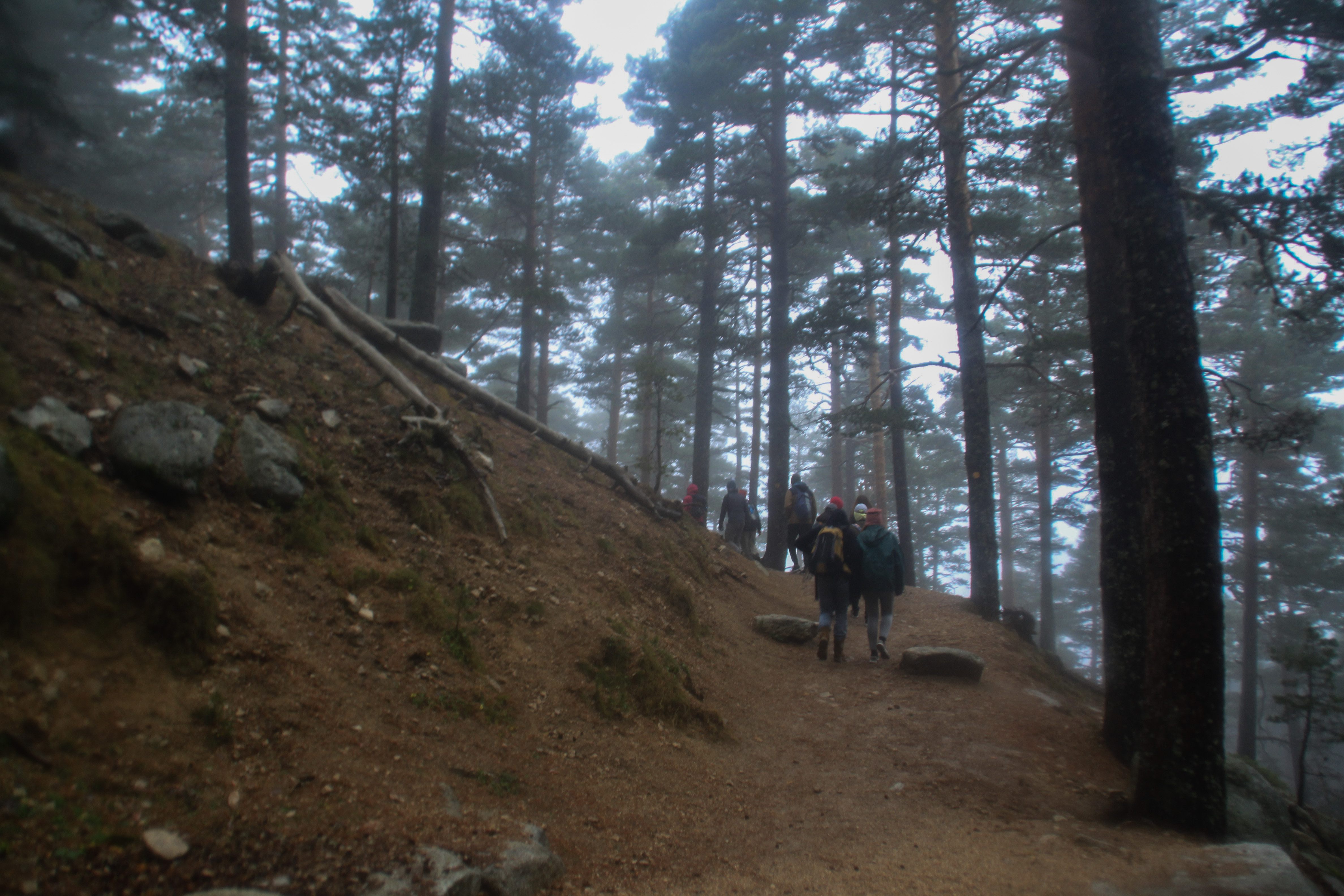 Tras llegar al puerto de Navacerrada en el autobús de la Universidad, el trekking daba comienzo junto al punto que delimita la Comunidad de Madrid y la provincia de Segovia. Tras unos primeros pasos por la carretera que une el puerto con la R.M. Los Cogorros, el grupo se dirigió al “Camino Schmidt” para recorrerlo hasta el desvío que lleva al Collado Ventoso, punto en el que repusimos fuerzas durante unos minutos para la ascensión más exigente de la jornada hacia la cuerda de la los 7 picos.