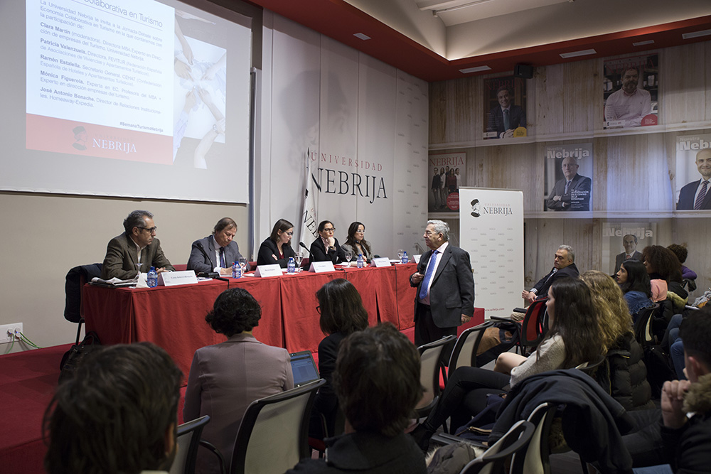 La Semana del Turismo cierra con una mesa redonda sobre la Economía Colaborativa en el Turismo en la que han participado expertos como Patricia Valenzuela, directora de FEVITUR; Ramón Estalella, secretario general de la Confederación Española de Hoteles y Alojamientos Turísticos (CEHAT); José Antonio Bonache, director de Relaciones Institucionales de Homeaway-Expedia y Mónica Figuerola, experta en EC. Asialink y profesora de la Universidad Nebrija.