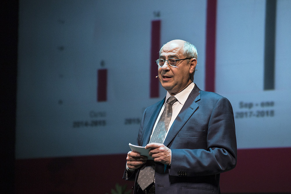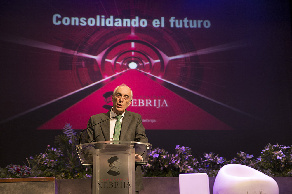 Manuel Villa-Cellino, presidente de la Fundación Antonio de Nebrija, abrió el encuentro felicitando a toda la comunidad universitaria por el trabajo realizado, que ha llevado a la Universidad Nebrija hasta el punto en el que está, “en el que se empieza a hablar muy bien de ella”. Aun así, en el camino por recorrer quedan muchos desafíos que “son colectivos porque son para avanzar todos juntos”, afirmó el presidente. “Nuestros avances han sido públicamente reconocidos y todo ello se consigue porque tenemos los equipos que marcan la diferencia”, dijo satisfecho Villa-Cellino.