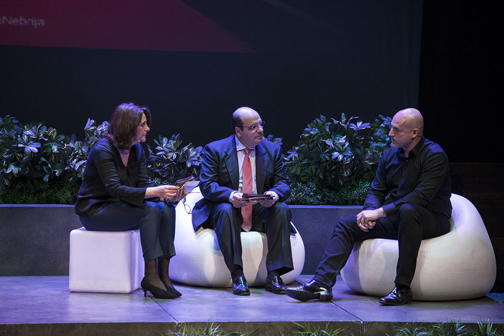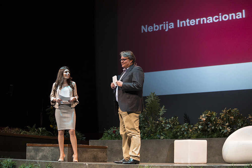 Para hablar del camino de la internacionalización que es tan importante para la Universidad Nebrija, Juan Antonio Escarabajal, director de Desarrollo Universitario, y Soraya Lozano, directora de Desarrollo Universitario Internacional, subieron al escenario y explicaron a los asistentes todo lo que la Universidad hace para atraer estudiantes de 70 nacionalidades diferentes y crear un campus en el que se fomente la integración y el intercambio cultural.