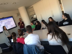 Los ejecutivos de Cuentas compartieron con los alumnos su trayectoria profesional en la empresa desde que empezaron como becarios hasta la actualidad, mientras la directora de Recursos Humanos les enseñó las diferentes áreas de trabajo que conforman la entidad. Además, los estudiantes tuvieron que resolver un caso práctico: la crisis del accidente de Lufthansa. Tras el trabajo en equipo expusieron los distintos modos de resolver la crisis.