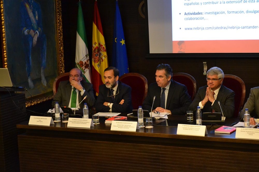 El director de la Cátedra Global Nebrija-Santander en Internacionalización de Empresas, Gonzalo Solana, participó el miércoles 21 de febrero en una jornada organizada por la Cámara de Comercio de Sevilla con el objetivo de dar a conocer a las empresas sevillanas las oportunidades comerciales y de inversión que ofrece el mercado peruano.