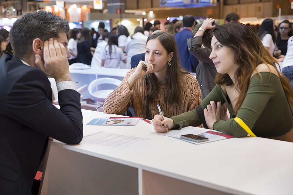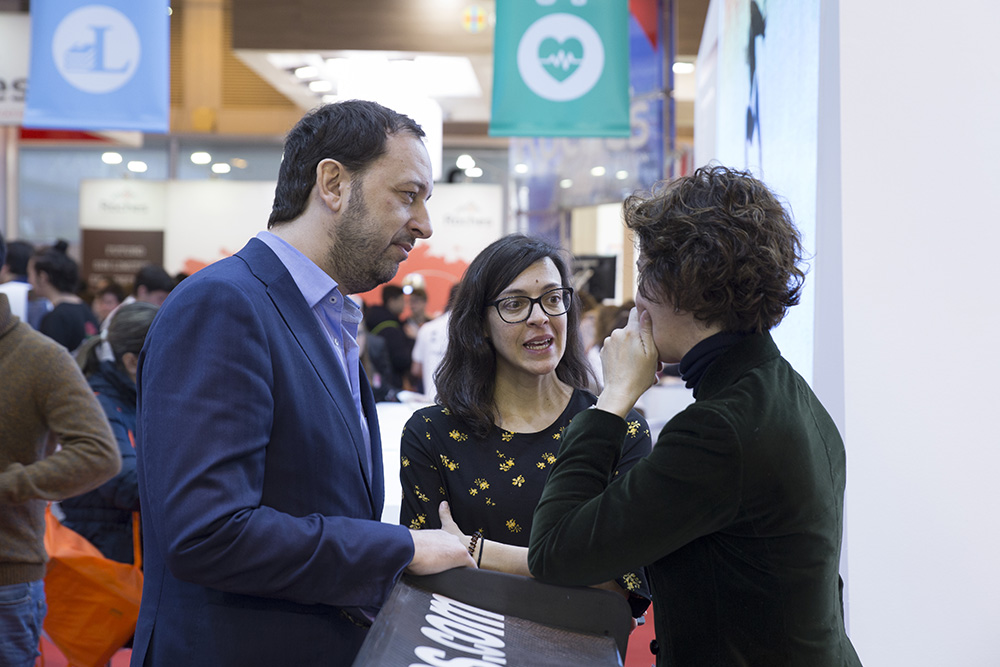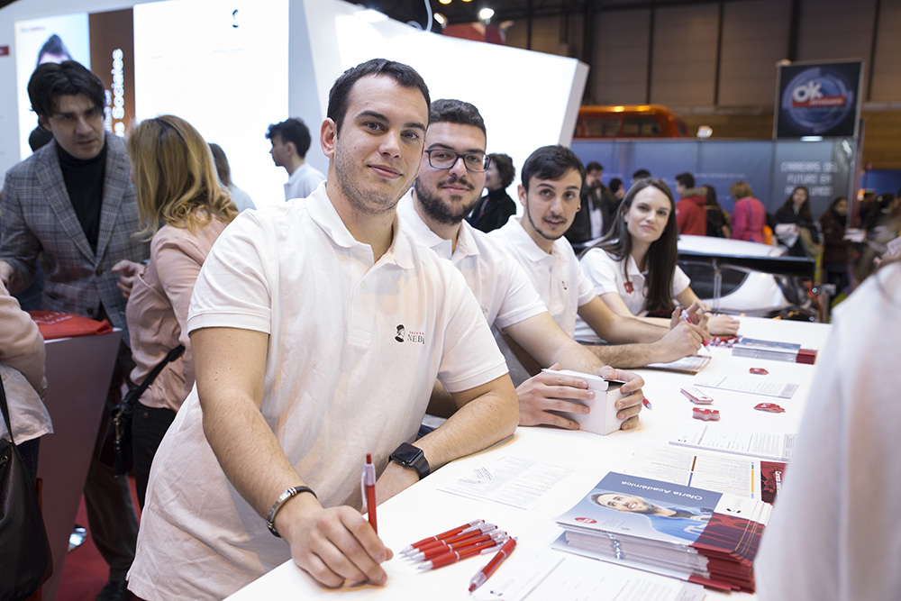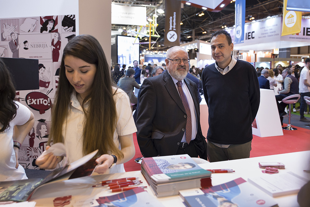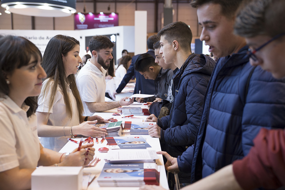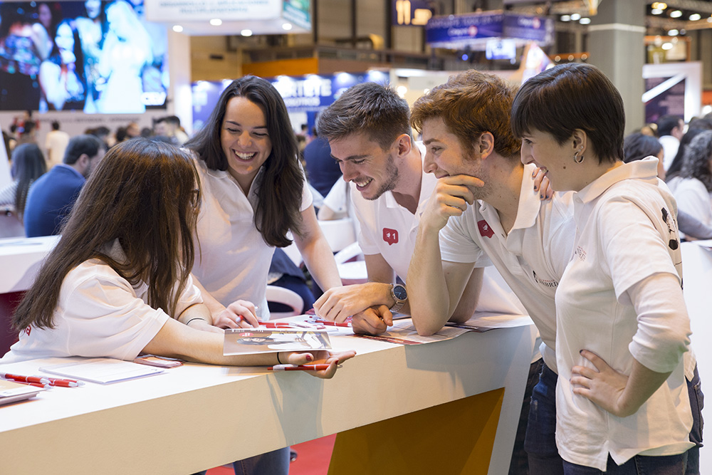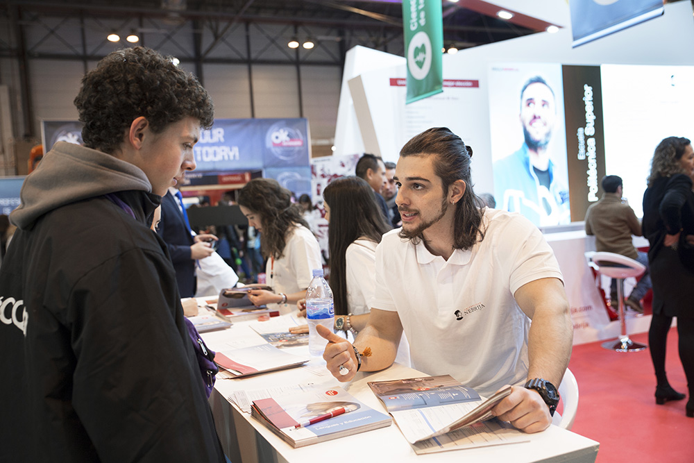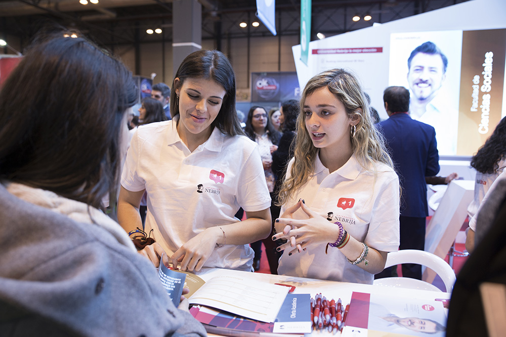 Para explicar las características de las titulaciones, las opciones de prácticas y el ambiente que se vive en la Universidad Nebrija nadie mejor que los propios alumnos de Nebrija que han asistido voluntariamente a la feria para compartir con los asistentes su experiencia universitaria.