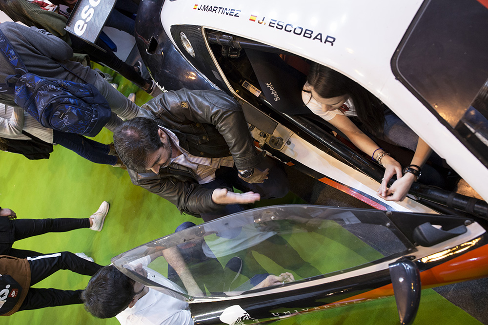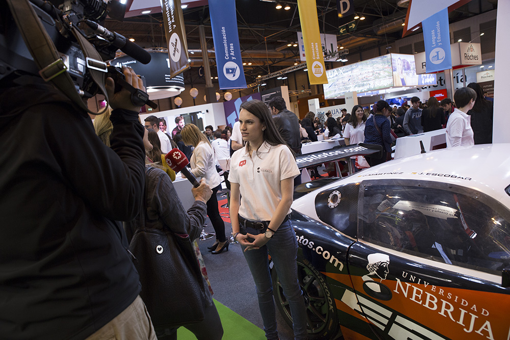 El stand de la Universidad Nebrija en el recinto de Ifema ha destacado una vez más por el coche de competición del grado de Ingeniería del Automóvil que ha atraído las miradas de muchos asistentes, futuros alumnos universitarios, orientadores y padres, que han querido acercarse a ver su interior.