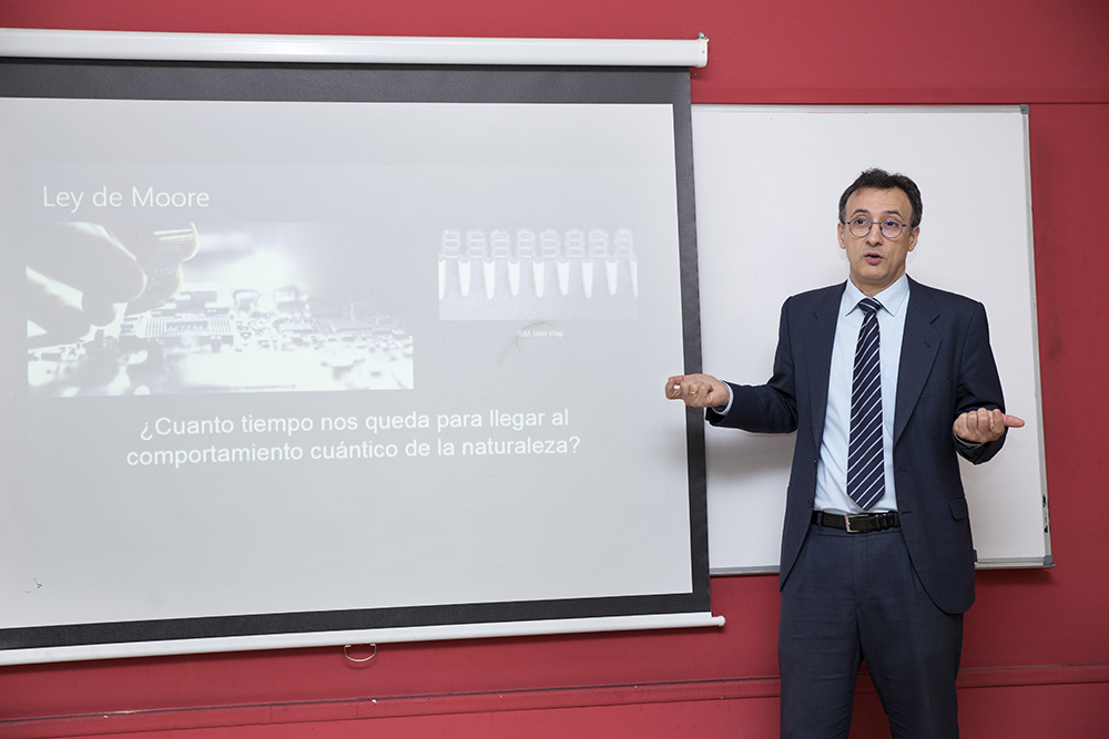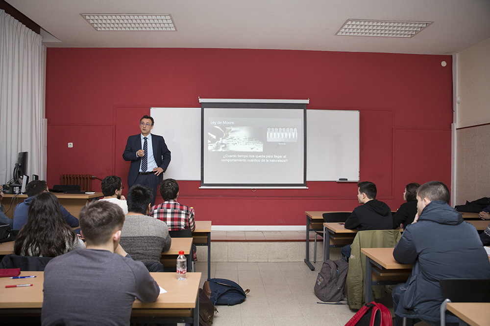 Las preguntas de los estudiantes al experto en computación cuántica giraron en torno al uso que se está dando a los procesadores comercializados, los nuevos perfiles profesionales previstos para esta tecnología y cómo reducir al máximo los errores incrementando la tolerancia a fallos de este tipo de procesadores.
