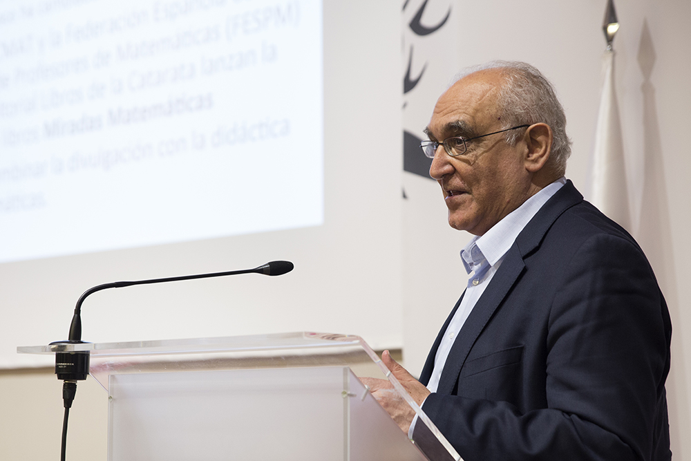 Manuel de León, académico de la Real Academia de Ciencias y fundador del ICMAT, presentó la colección Miradas Matemáticas, que busca cambiar la idea que tenemos de las matemáticas y divulgar la utilidad de esta ciencia. “Los matemáticos sabemos, por ejemplo, cómo solucionar el problema de la representación electoral, mientras que los políticos no sabrían ni por dónde empezar”, explicó el experto.