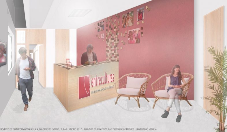 La Fundación Entreculturas, dedicada principalmente al acceso a la educación como medio de cambio social, justicia y diálogo entre culturas, ha invitado a un equipo de alumnos de los Grados en Diseño de Interiores y en Fundamentos de Arquitectura de la Universidad Nebrija, a diseñar la transformación de los espacios de su nueva sede y coordinar el montaje de dicha renovación.