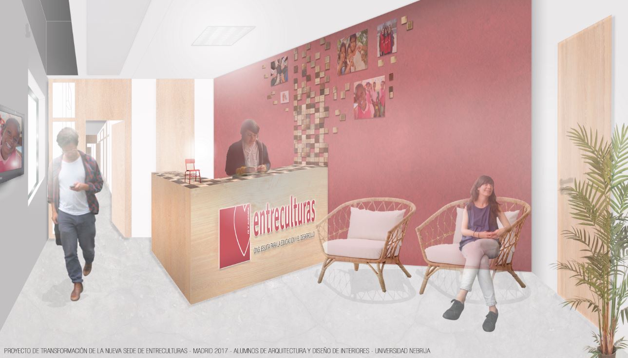 La Fundación Entreculturas, dedicada principalmente al acceso a la educación como medio de cambio social, justicia y diálogo entre culturas, ha invitado a un equipo de alumnos de los Grados en Diseño de Interiores y en Fundamentos de Arquitectura de la Universidad Nebrija, a diseñar la transformación de los espacios de su nueva sede y coordinar el montaje de dicha renovación.