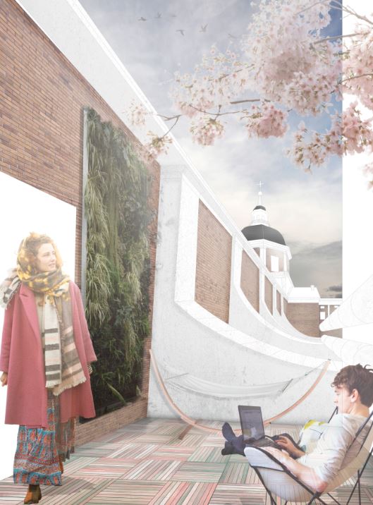 Según Carla del Castillo, una de las alumnas autoras del proyecto “la intervención parte de un ejercicio de escucha y creatividad, y tiene como objetivo principal crear una serie de atmósferas agradables, que transmitan la esencia y valores de la Fundación. Optamos por un diseño atemporal y joven, que a su vez respete la estética ya consolidada del edificio. Mediante geometrías sencillas en forma y ritmo, se consigue un espacio que puede ser transformado y completado por los trabajadores de la sede según las necesidades espacio-temporales. Se utilizan materiales claros y neutros para conseguir un conjunto acogedor, resaltando el rojo corporativo de Entreculturas que se encuentra en diversos puntos de la sede. La vegetación y la luz se utilizan como materiales que construyen un lugar fresco y renovado, que nace de La terraza y la Sala del Diálogo y a través de las zonas de trabajo colectivo llega a la Sala de Plenario y la Sala de Silencio.”