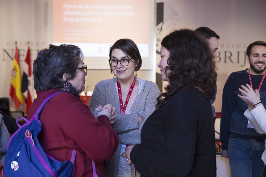 Annia Gandón Cabrebra, profesora de Español como Lengua Extranjera en CEAR, la Casa Encendida y Asilim, habló de los retos a los que se enfrentan los docentes a la hora de alfabetizar en una lengua extranjera y compartió sus experiencia con los asistentes que pudieron debatir sobre los temas tratados durante el encuentro.