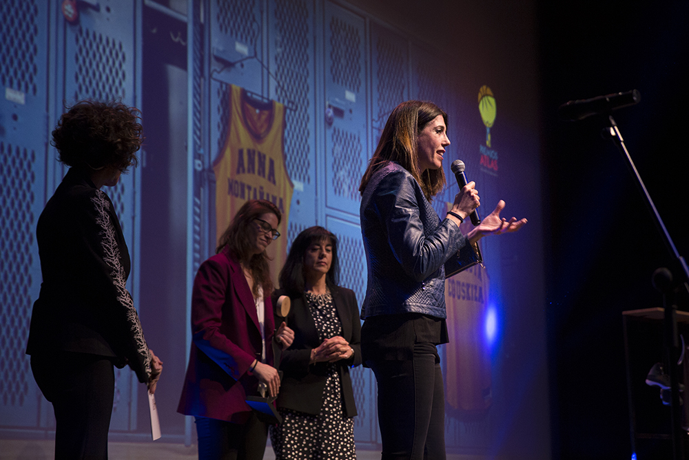 Valdemoro confiesa “estar súper agradecida por recibir el Premio Atlas y hacerlo coincidiendo con el 125 aniversario del primer partido de baloncesto femenino” y anima a seguir impulsando y fomentando el baloncesto femenino.
