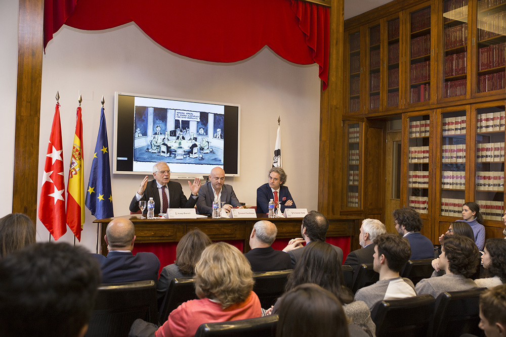 El ex ministro Josep Borrell ha asistido a la Universidad Nebrija dentro del marco de la celebración de la Semana de la Empresa y ha hablado con los alumnos sobre la crisis vivida en Europa y las medidas tomadas en la eurozona para salir adelante. De la situación actual europea Borrell ha dicho que “en términos macroeconómicos estamos saliendo de la crisis, pero las heridas son profundas y las perspectivas de la gente, en concreto para los jóvenes, todavía no son muy buenas”.