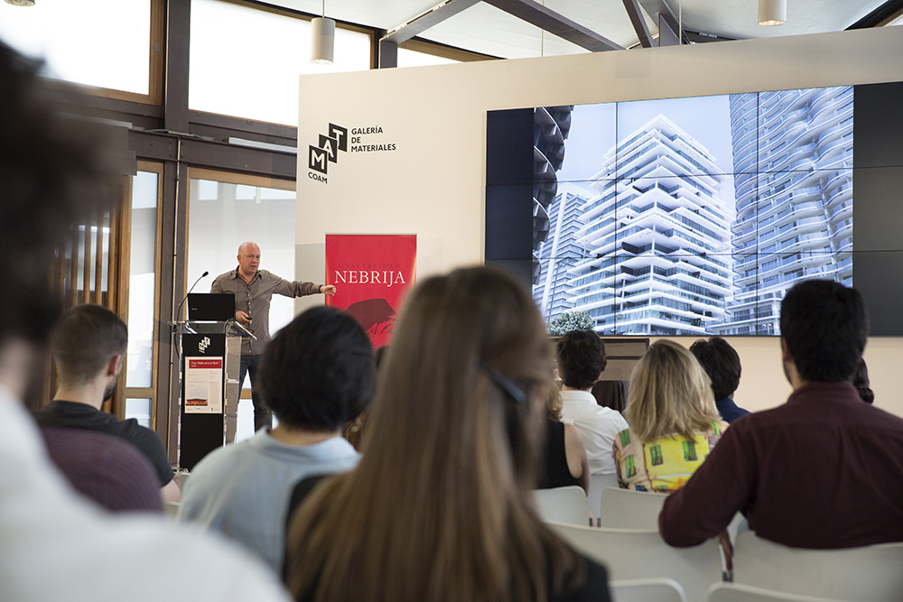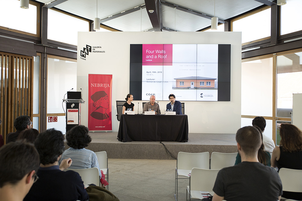 La Universidad Nebrija organizó el jueves 19 de abril la conferencia del arquitecto Reinier de Graaf, socio de la Office for Metropolitan Architecture (OMA), sobre su libro Four Walls and a Roof (2017), una serie de ensayos sobre la naturaleza cambiante de la profesión de la arquitectura en el siglo XXI.