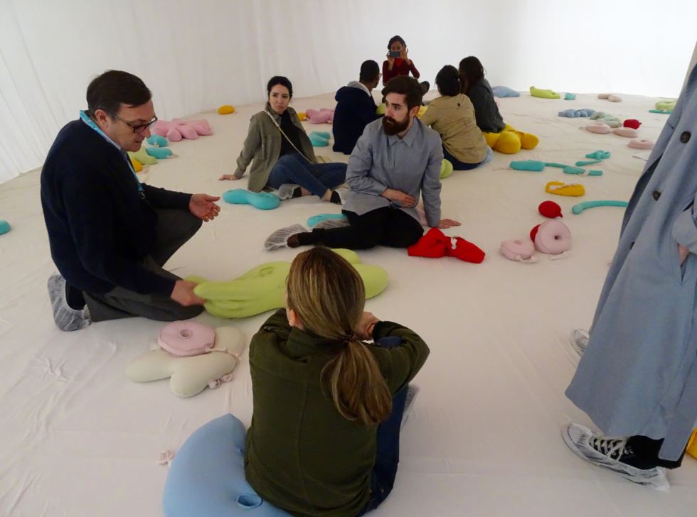 De la mano de Julio Orgaz Orgaz, los alumnos recorrieron las 185 obras expuestas en un espacio de 4000 m2, un marco excepcional para dar cabida a obras de todas las escalas y técnicas. Entre otras funciones, la colección Inelcom se ocupa de colaborar con diversas instituciones, así como de organizar exposiciones y conservar sus obras y participar en la producción de otras nuevas.