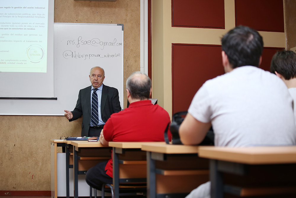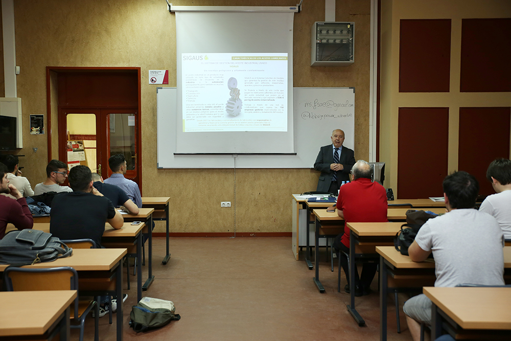 Fermín Martínez, director de Comunicación y Relaciones Institucionales de Sigaus tuvo un encuentro con los alumnos de la Escuela Superior Politécnica para cerrar la Semana de la Ingeniería y acercar a las aulas el Sistema Integrado de Gestión de Aceites Usados.