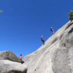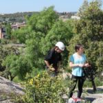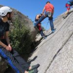 A primera hora de la mañana el autobús desplazó a nuestros alumnos a la localidad de Torrelodones para acceder caminando a las numerosas vías “equipadas” de escalada deportiva que hay en esta zona. De la mano de dos técnicos de escalada de la Federación de Montaña, y divididos en dos grupos, los participantes pudieron practicar las distintas técnicas de escalada en piedra natural y rápel (descenso).
