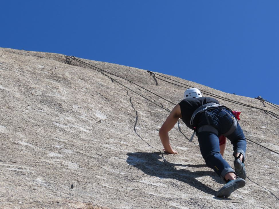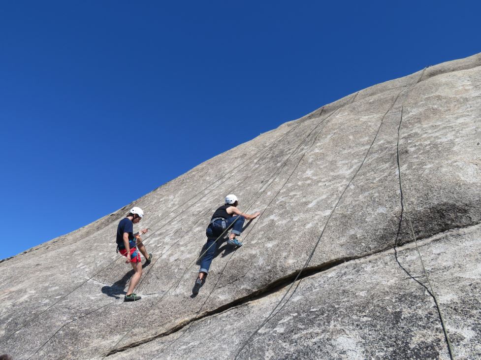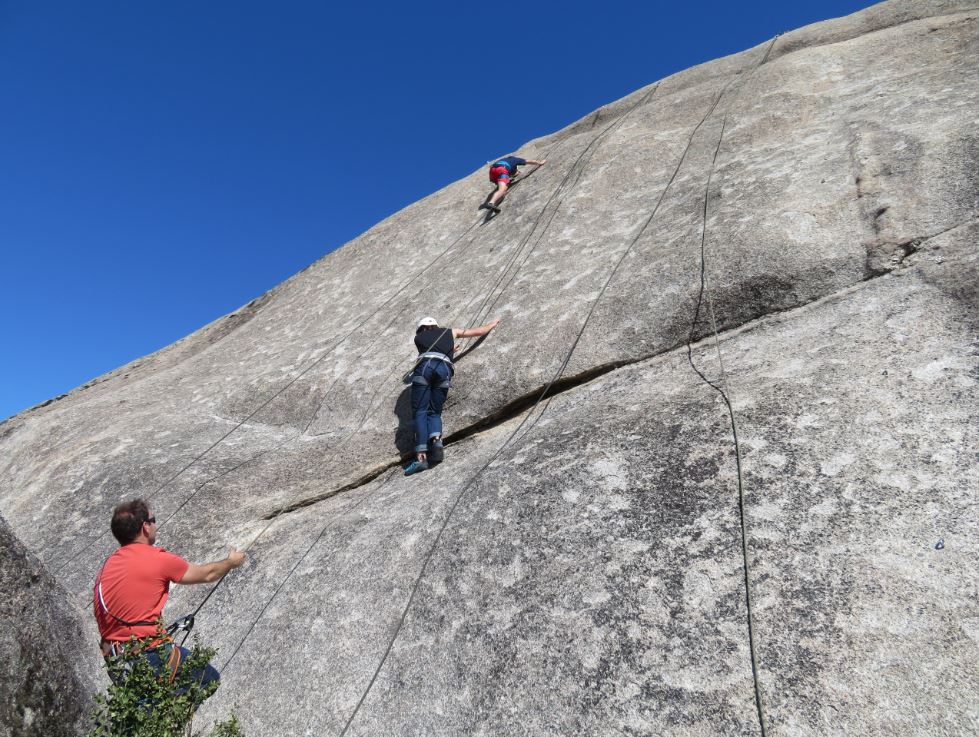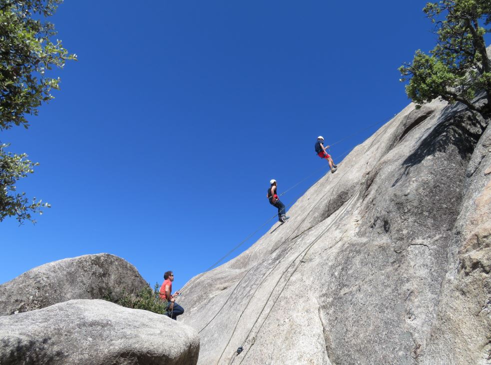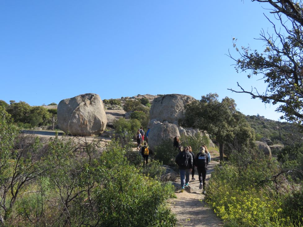 A primera hora de la mañana el autobús desplazó a nuestros alumnos a la localidad de Torrelodones para acceder caminando a las numerosas vías “equipadas” de escalada deportiva que hay en esta zona. De la mano de dos técnicos de escalada de la Federación de Montaña, y divididos en dos grupos, los participantes pudieron practicar las distintas técnicas de escalada en piedra natural y rápel (descenso).