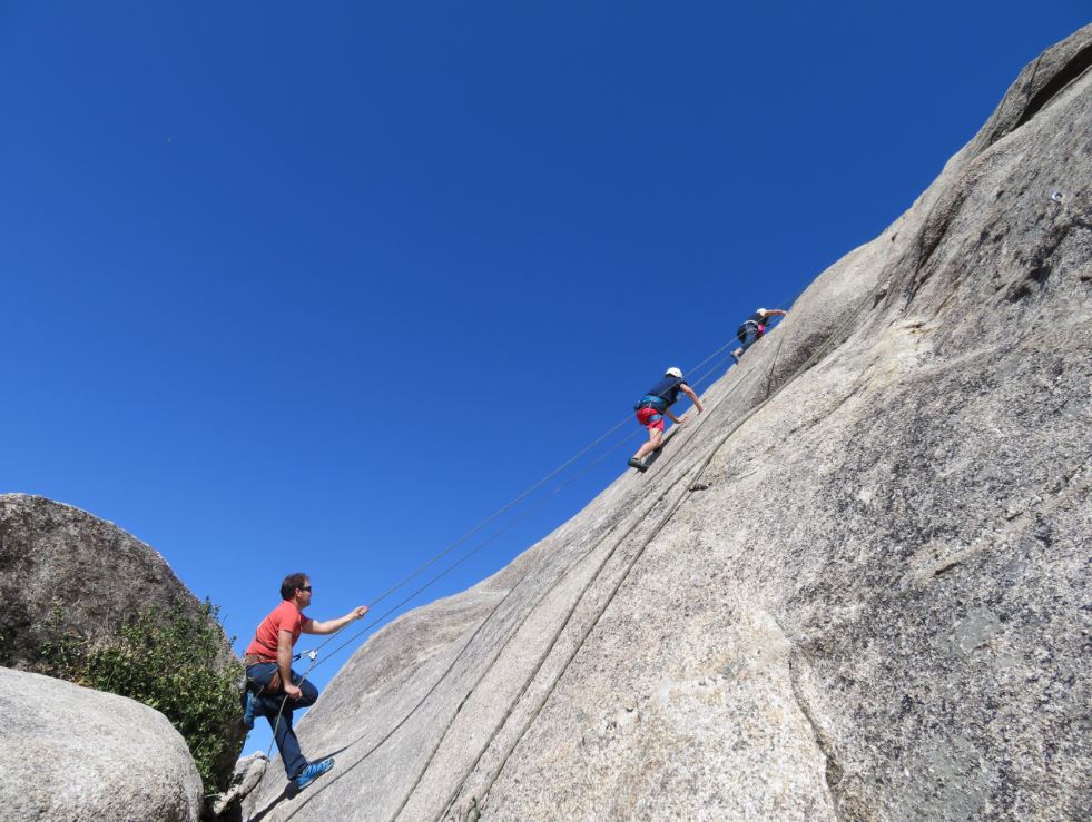 Perfectamente equipados y asegurados, cada alumno se ejercitó en tres vías distintas de escalada con diferentes niveles de dificultad. Mientras un grupo escalaba, el otro realizaba un trekking desde Torrelodones hasta el Alto del Pico por los senderos que recorren esta zona de la Cuenca Alta del Manzanares y desde donde se pueden contemplar algunas de las mejores vistas de Madrid desde la Sierra.