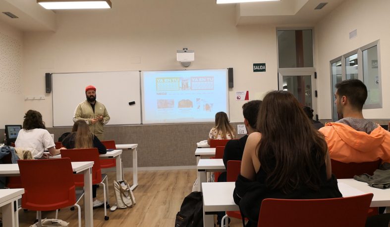 Los estudiantes de Diseño de Moda y Diseño Digital y Multimedia tuvieron la oportunidad, el pasado lunes, de escuchar a Javier de Juanas, editor de moda de la revista Neo2, que habló de su experiencia profesional, sus inicios en el mundo del estilismo, sus anécdotas y dio a los estudiantes valiosos consejos para iniciar su andadura profesional en el sector.
