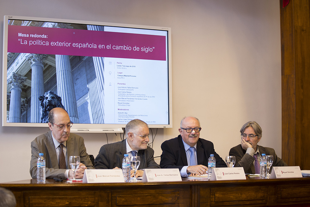 La Semana del Derecho y las Relaciones Internacionales, organizada por la Facultad de Ciencias Sociales, dio comienzo con mesa redonda “La política exterior española en el cambio de siglo”, que contó con la participación de Juan Antonio Yañez-Barnuevo, embajador de España, Juan Carlos Pereira, presidente de la Comisión española de Historia de las Relaciones Internacionales, Juan Manuel Fernández Fernández-Cuesta, historiador, y Miguel González, periodista de El País.