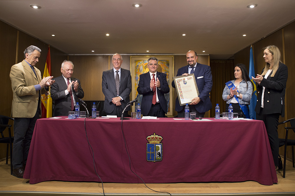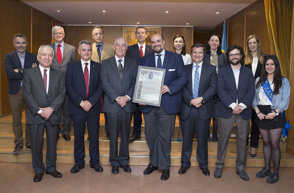 La Universidad recibió el jueves 17 de mayo el título de ‘Entidad Asturiana Adoptiva en Madrid’, entregado por el Centro Asturiano en Madrid en reconocimiento al trabajo que ha desarrollado desde su creación, en 1995, y por su compromiso con la educación universitaria. Un acto que donde se dieron cita miembros de la comunidad asturiana en la capital así como profesores y personal de la Universidad. Entre otros, en el encuentro participaron Valentín Martínez-Otero, presidente del Centro Asturiano en Madrid; Francisco Rodríguez García, presidente de Reny-Picot, presidente de Honor de la institución y miembro del Patronato de la Universidad Nebrija; Andrés Menéndez, presidente adjunto del Centro; Manuel Villa-Cellino, presidente de la Fundación Antonio de Nebrija y fundador de la Universidad, y Juan Cayón, rector de Nebrija.