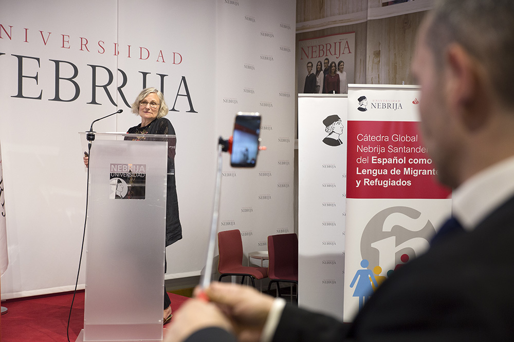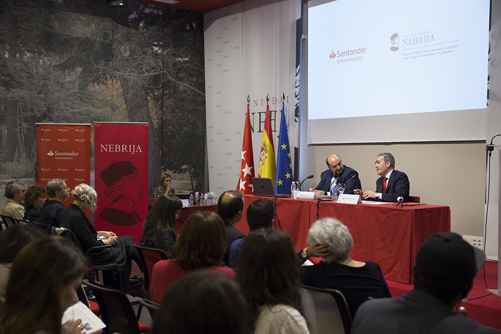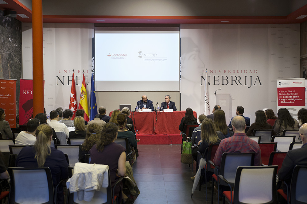 La Facultad de Lenguas y Educación de la Universidad Nebrija, con la colaboración de Santander Universidades, ha presentado hoy la Cátedra Global Nebrija-Santander del Español como lengua de migrantes y refugiados. Desde el supuesto básico de que la lengua es el primer y principal motor para tender puentes entre culturas, esta Cátedra promoverá y coordinará actividades relacionadas con la investigación y difusión del conocimiento sobre el español como lengua de migración y de refugiados, con el objetivo de avanzar en su bienestar lingüístico, social, identitario y emocional. El español, con unos 500 millones de hablantes, es la segunda lengua más hablada del mundo.