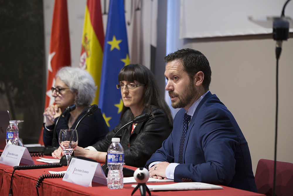 El investigador Jon Andoni Duñabeitia ha explicado el funcionamiento que tendrá el laboratorio móvil de la Cátedra y ha dicho que “tenemos que atender a los diferentes grupos sociales que aprenden español por distintos motivos de maneras diferentes porque los grupos migratorios que se desplazan de su país y tienen que aprender español para sobrevivir no pueden acercarse al español de la forma más académica y clásica”.
