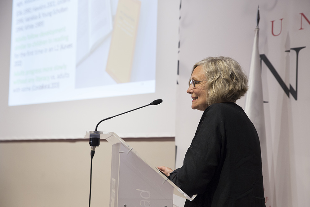 La jornada de presentación de la Cátedra ha contado también con la exposición de Martha Young-Scholten, de la Universidad de Newcastle, sobre cómo la alfabetización afecta al aprendizaje de un segundo idioma en los adultos; y Abou, licenciado en filología francesa y solicitante de asilo en nuestro país, quien ha explicado a los asistentes la importancia de aprender el español como puente entre los inmigrantes y refugiados y el país de acogida para la favorecer la integración en el país de acogida.