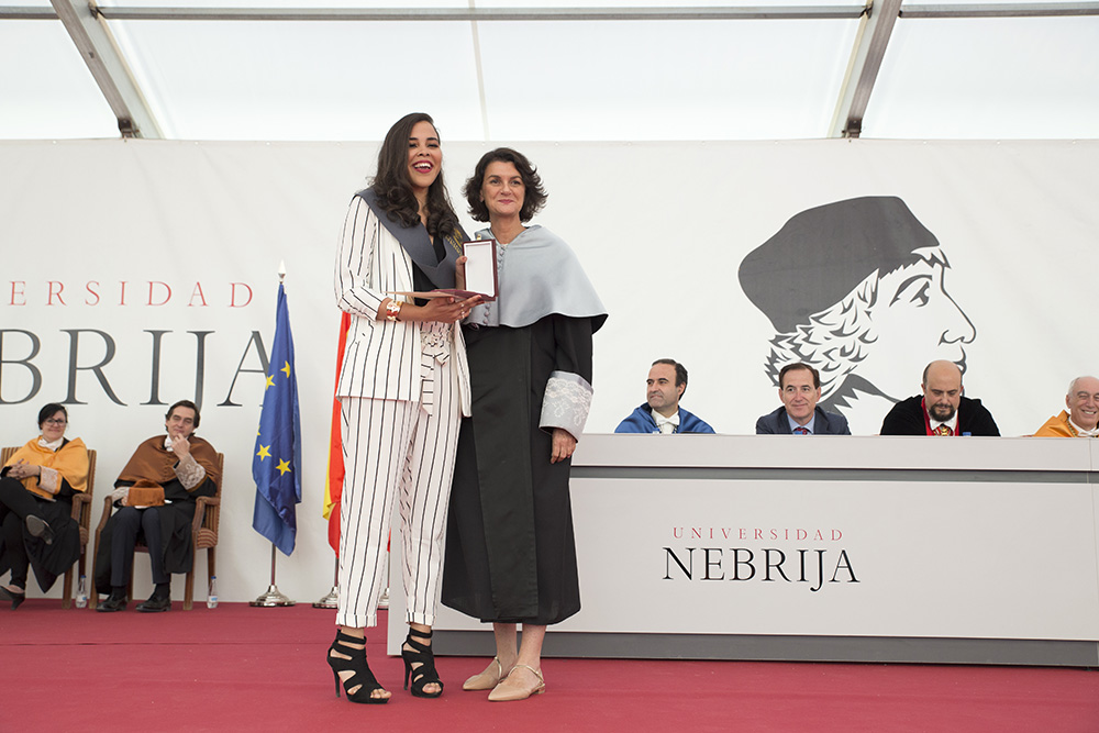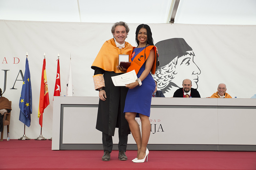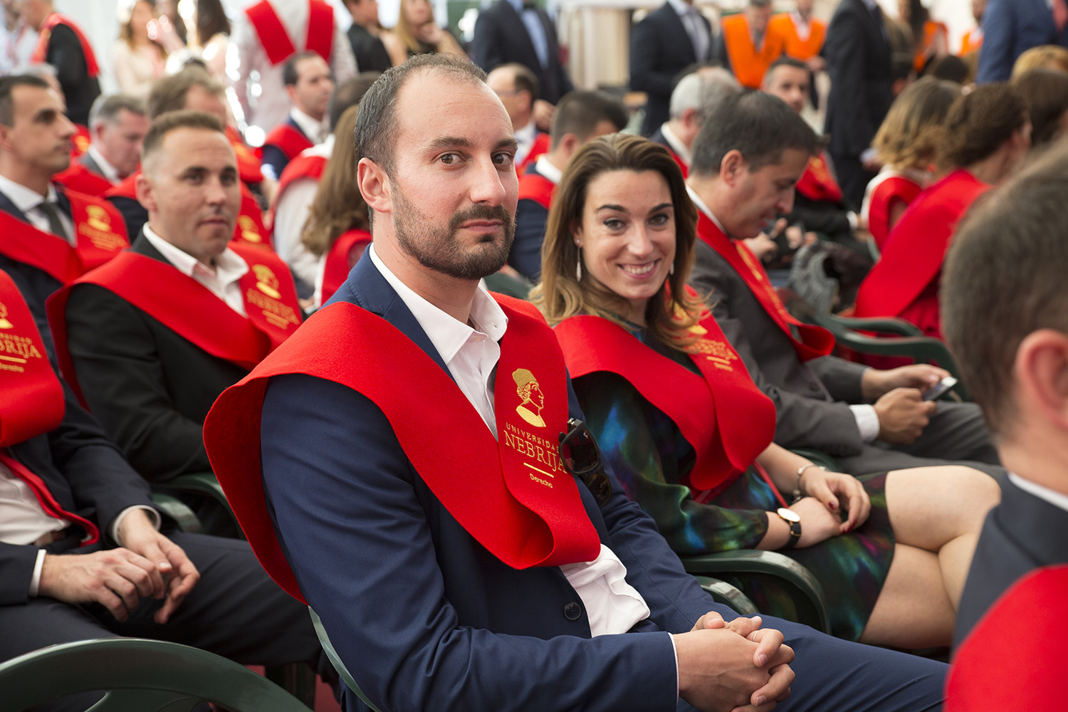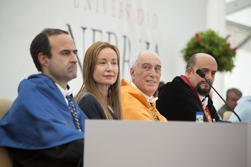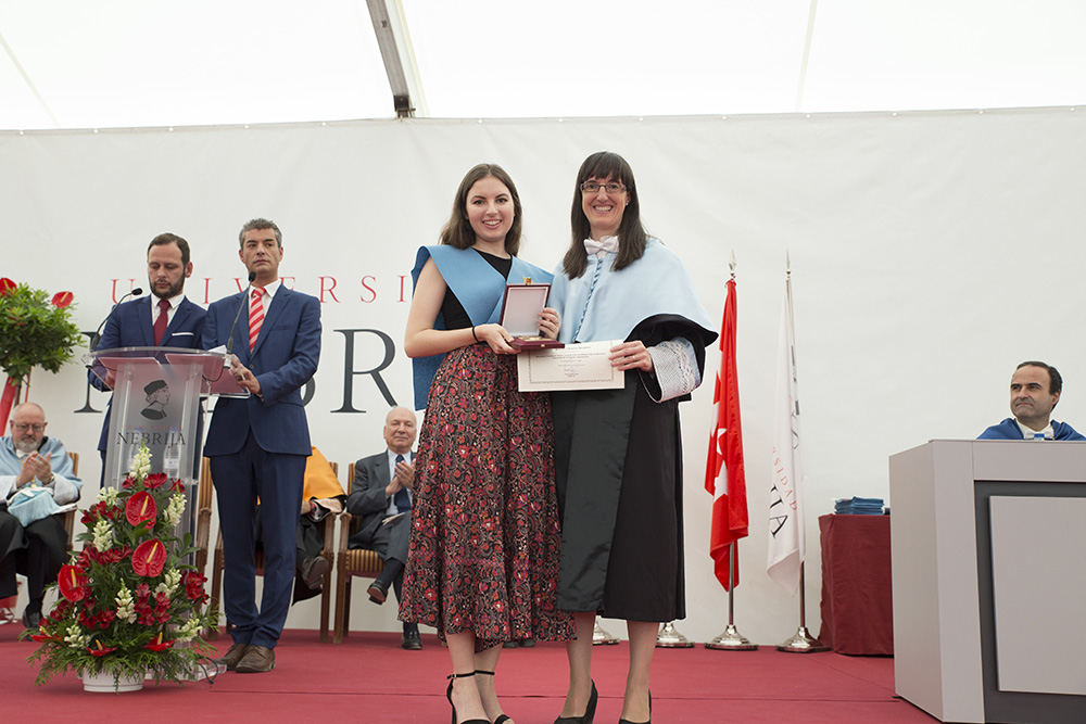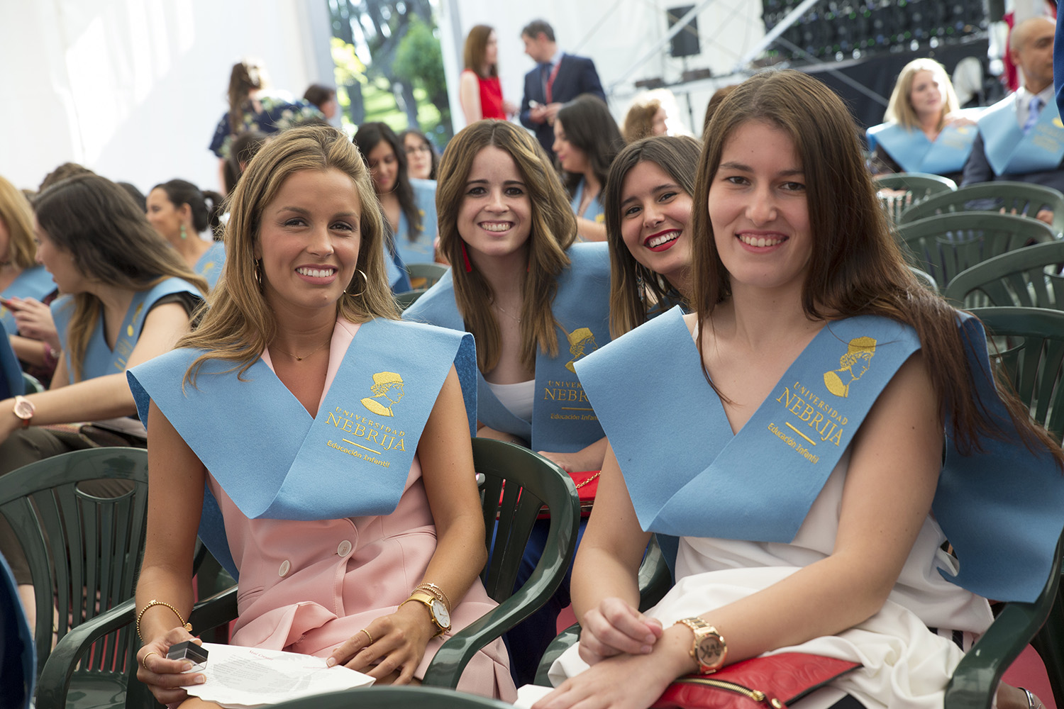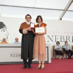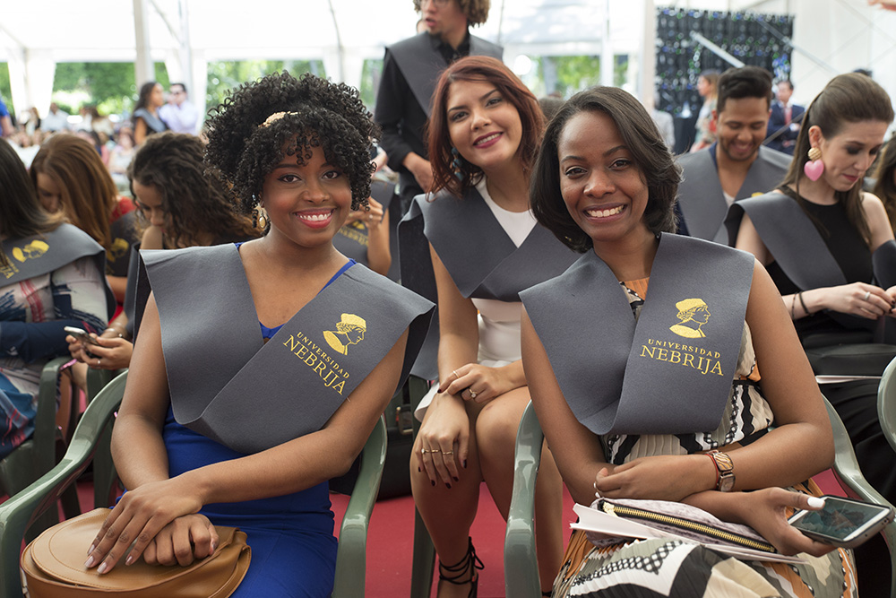 María Riesco, estudiante de Global Campus Nebrija, hizo referencia al poeta Constantino Cavafis y su conocido poema Ítaca y animó a sus compañeros a no cesar en su empeño por conseguir ser mejores: “Encontrad lo que os apasione, tened suerte en el camino, pero, sobre todo, disfrutad del viaje”. Carla Díaz Arena, alumna de grado de la Facultad de Lenguas y Educación, destacó en su discurso en nombre de los alumnos de grado que “tras mucho esfuerzo, alegrías y momentos difíciles” veía a sus compañeros allí reunidos como profesionales. A todos ellos les pidió confianza en sí mismos y que no tuvieran miedo a los fallos, porque “de los errores también se aprende”. La alumna Sandra Izquierdo Sanz, en representación de los alumnos de máster, instó a sus compañeros a “cambiar el mundo con lo que aquí hemos aprendido” y les pidió que fueran “inconformistas” con su formación y siguieran buscando más conocimiento que adquirir. Izquierdo no olvidó agradecer a los familiares el apoyo ofrecido durante su formación y a los profesores por ofrecer lo mejor de sí mismos a los alumnos.