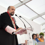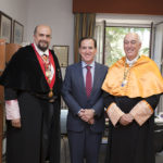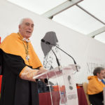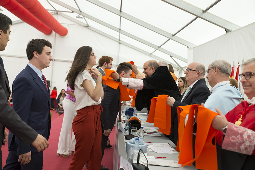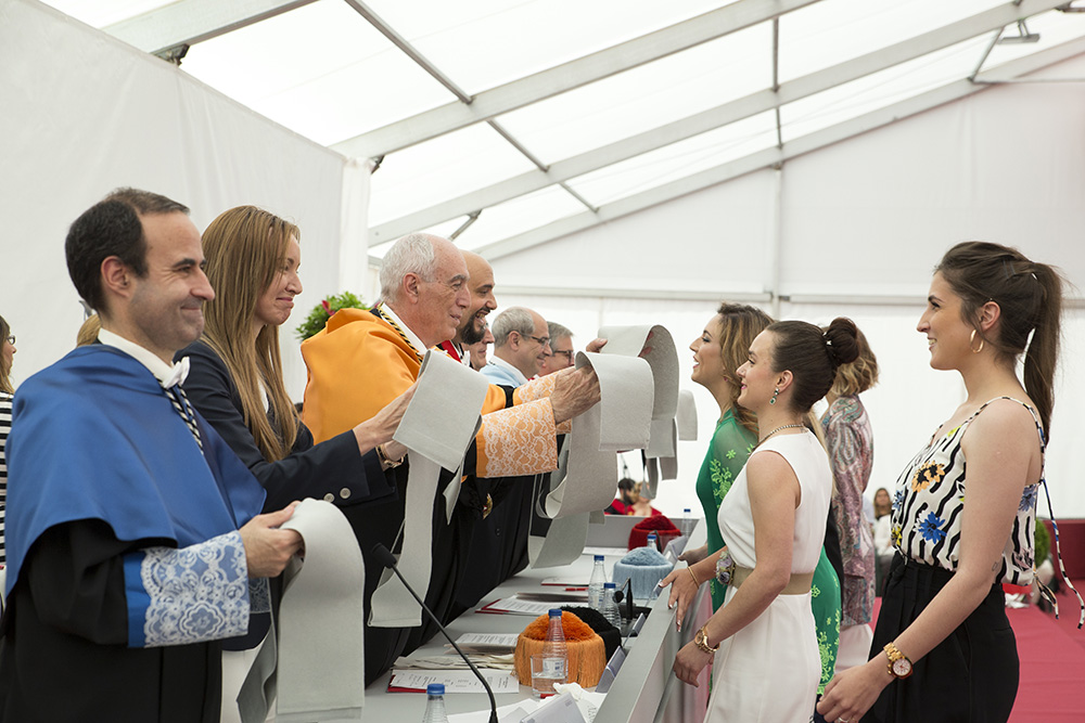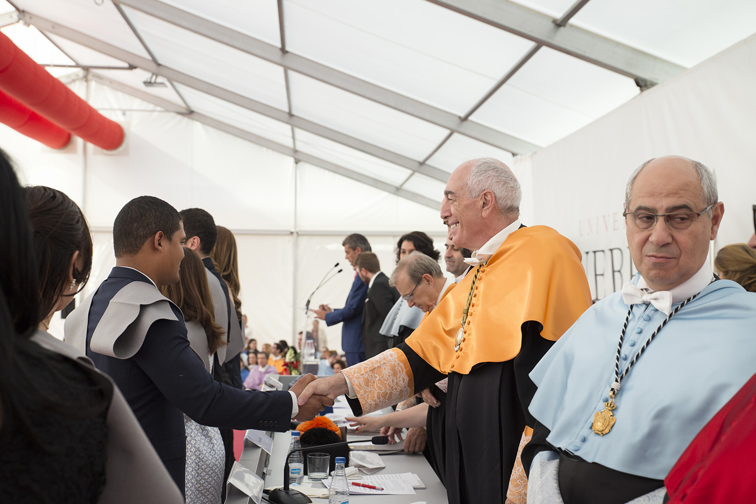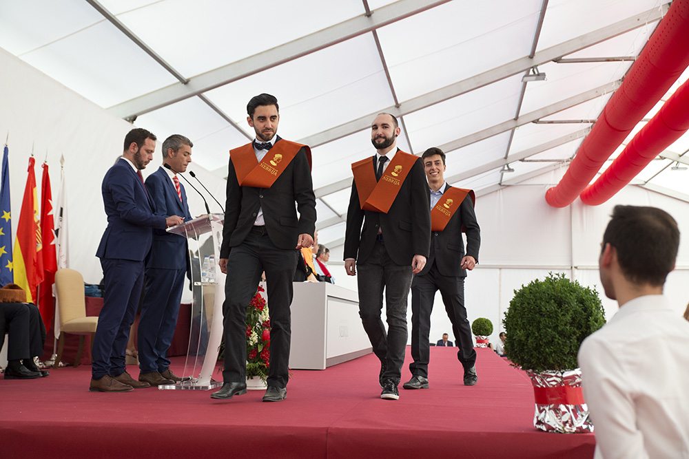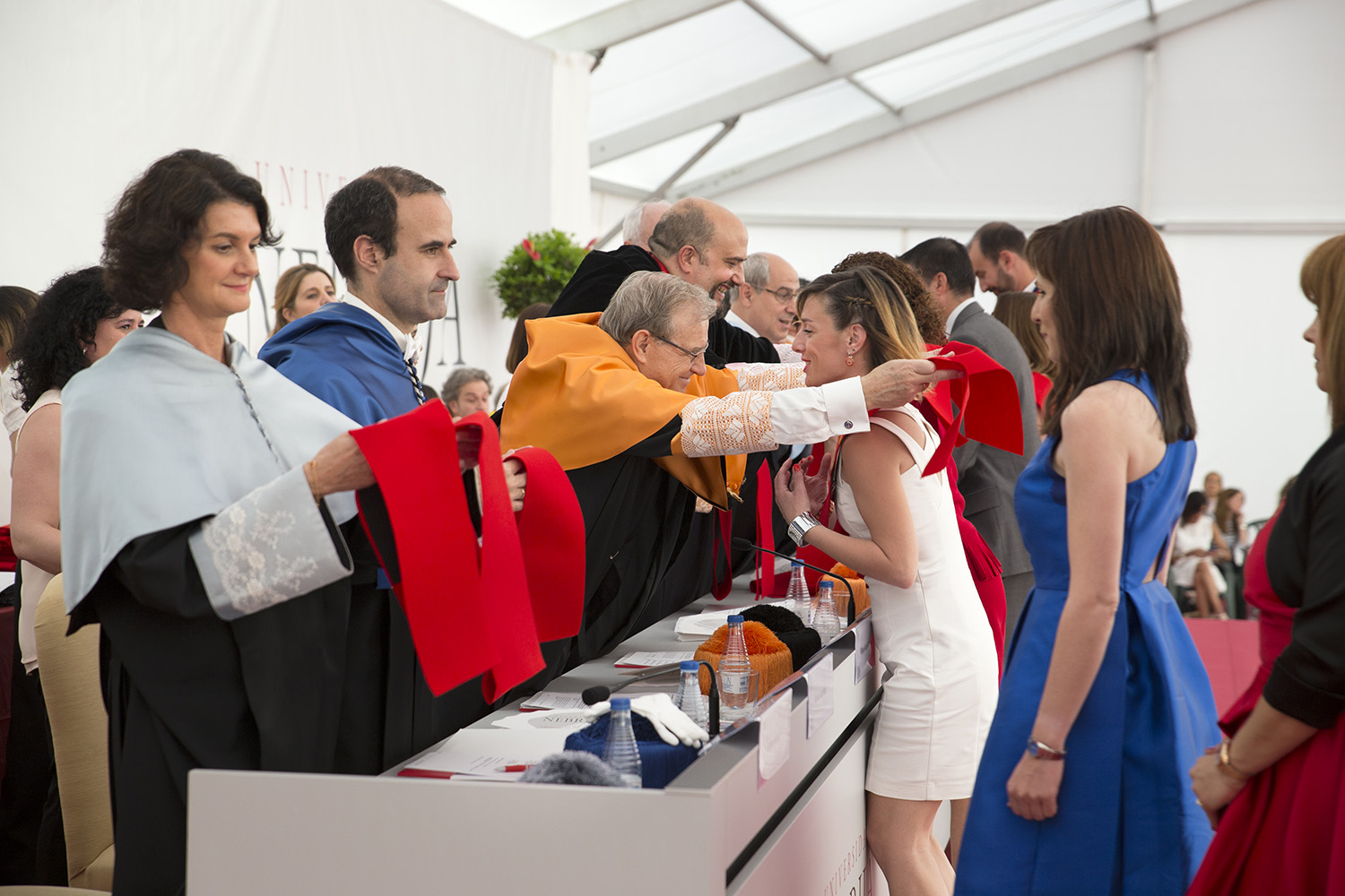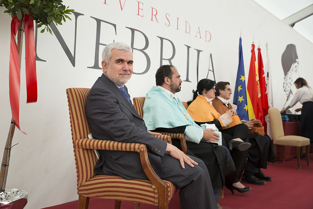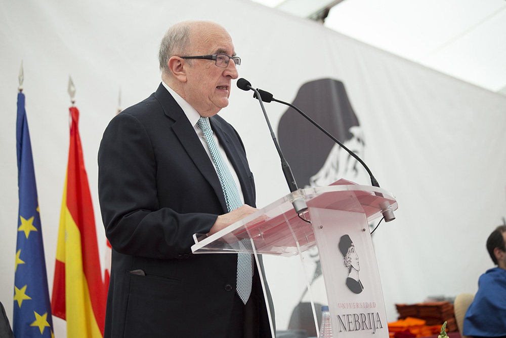 El rector Juan Cayón, como es tradición, también se dirigió a los alumnos para despedirse de ellos. Cayón quiso transmitirles tranquilidad porque “aunque penséis que no estáis preparados, comprobaréis que sí lo estáis, tenéis formación y valores”. Se mostró muy satisfecho con el deber cumplido por parte de todo el claustro de profesores que ven terminado su trabajo cuando termina esta etapa y felicitó a todos aquellos que han colaborado en la formación de los alumnos por “el compromiso de todos por dar lo mejor de cada uno y hacer el mejor trabajo posible”. A los alumnos les dijo que “la Universidad Nebrija siempre será vuestra casa, representadla bien porque está en vuestra mano mejorar el mundo”.
