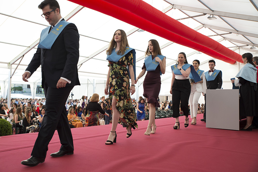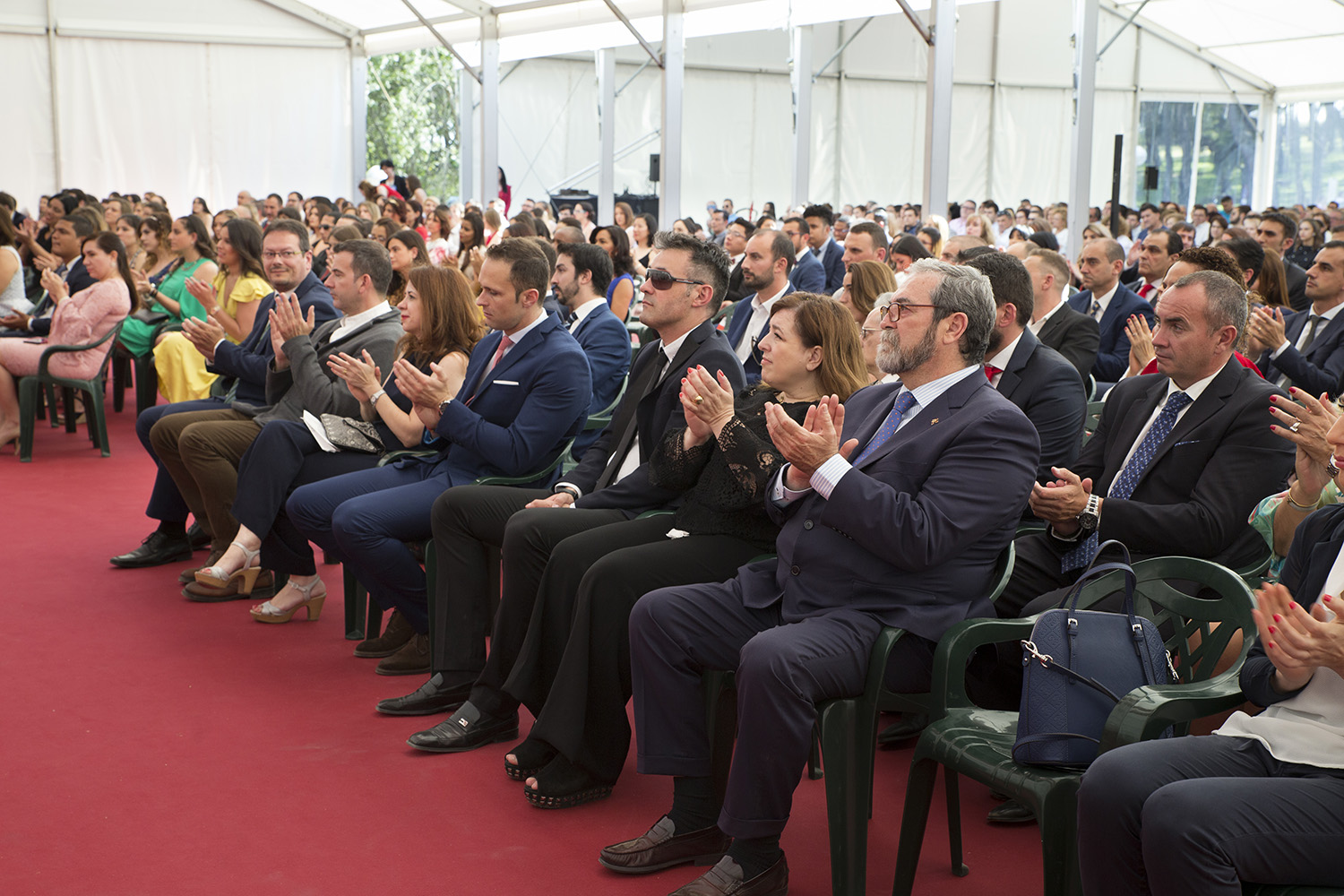 Para dar este gran salto, estuvieron rodeados los profesores, familiares y amigos que les han acompañado durante sus años de estudios. Además, en las tres ceremonias de graduación que se celebraron este año, los estudiantes contaron con dos padrinos y una madrina como ejemplo de éxito: Miguel Ángel Ballesteros, director general de Seguridad Nacional, Loreto Ordóñez, presidenta de Engie-España, y Antonio Huertas, presidente de Mapfre.