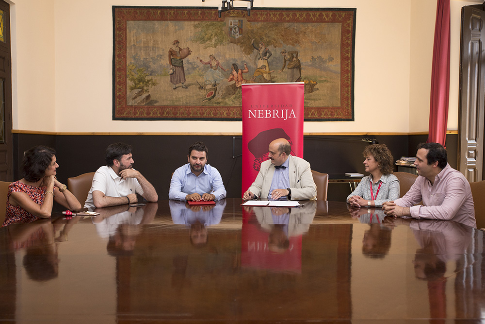 El convenio ha sido firmado por Juan Cayón, rector de la Universidad Nebrija, y Juan Manuel Rueda, Director de Organización y Recursos Humanos de Movistar+, y al acto han asistido David Quintana, Gerente de Producción de Deportes y Juan Andrés García Ropero, Director de Deportes de la cadena.